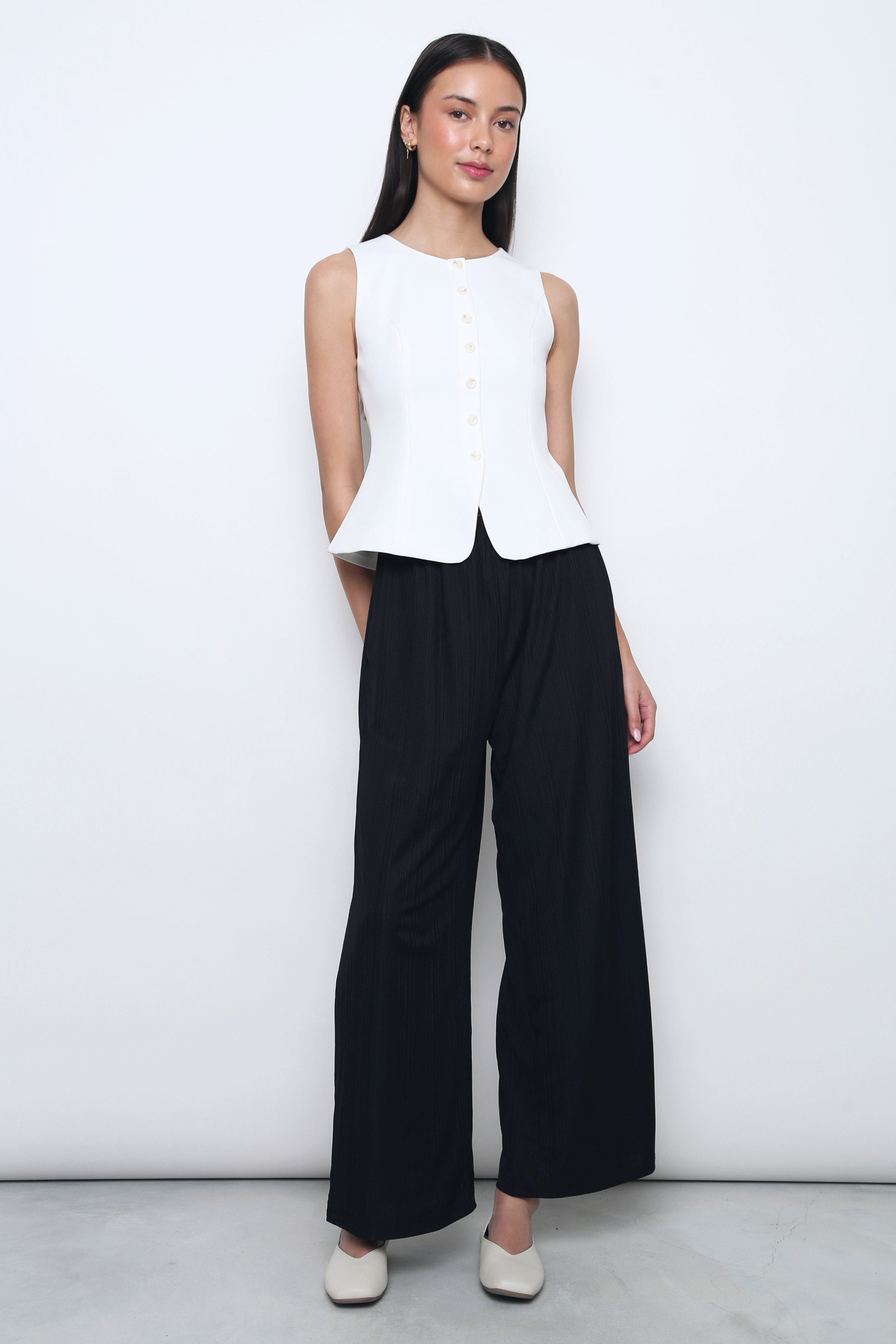 Crafted from textured polyester and fully lined for a smooth, refined finish, this piece blends comfort with understated elegance. The stretchable waist ensures the perfect fit, while the concealed back zipper keeps the silhouette sleek. Timeless and versatile, it pairs seamlessly with both workday staples and off-duty favourites, making it a go-to you’ll reach for time and again.