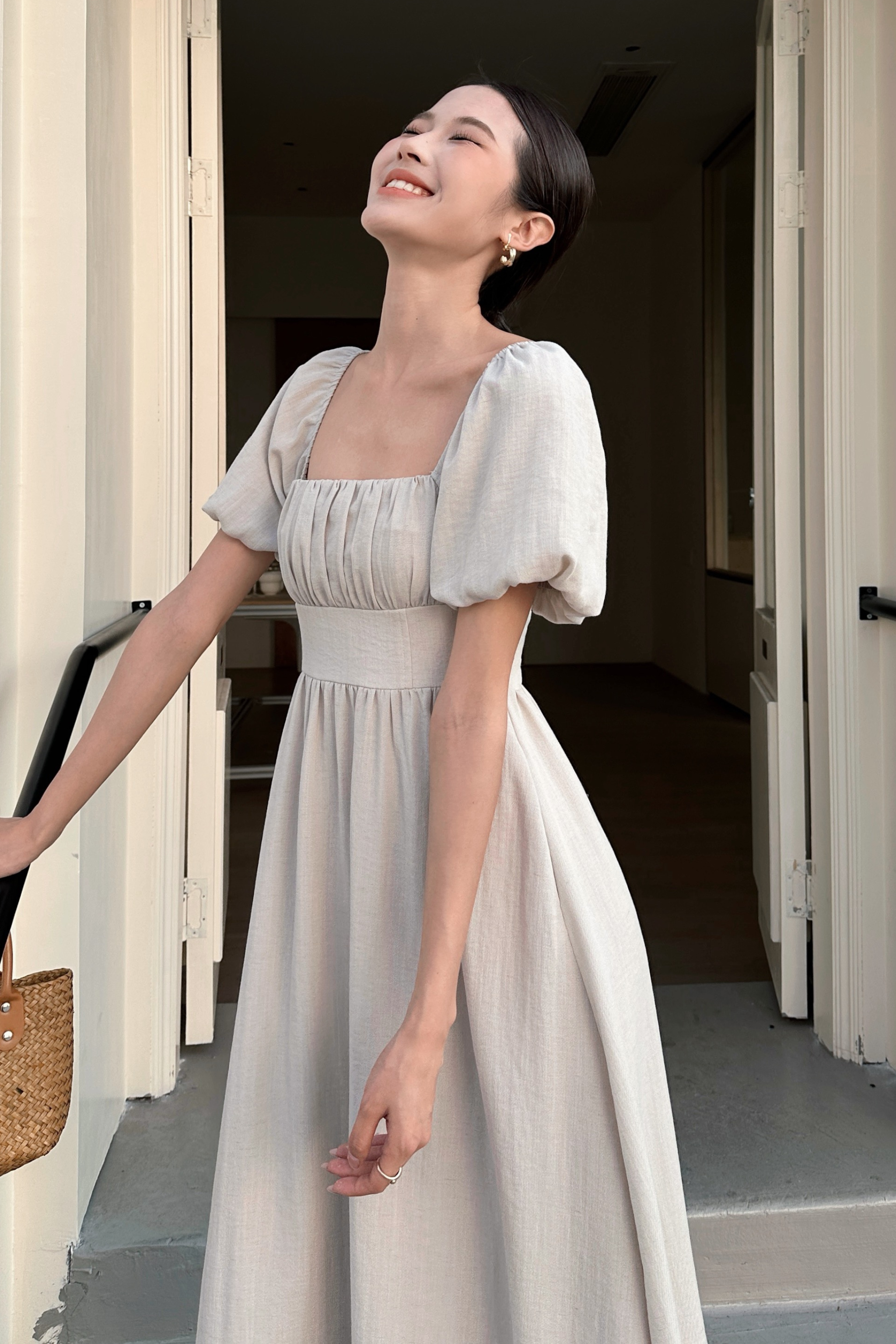 This timeless midi dress features a flattering square neckline and romantic puff sleeves for an effortlessly feminine look. The smocked bodice offers a comfortable, figure-enhancing fit while the flowy skirt adds graceful movement.