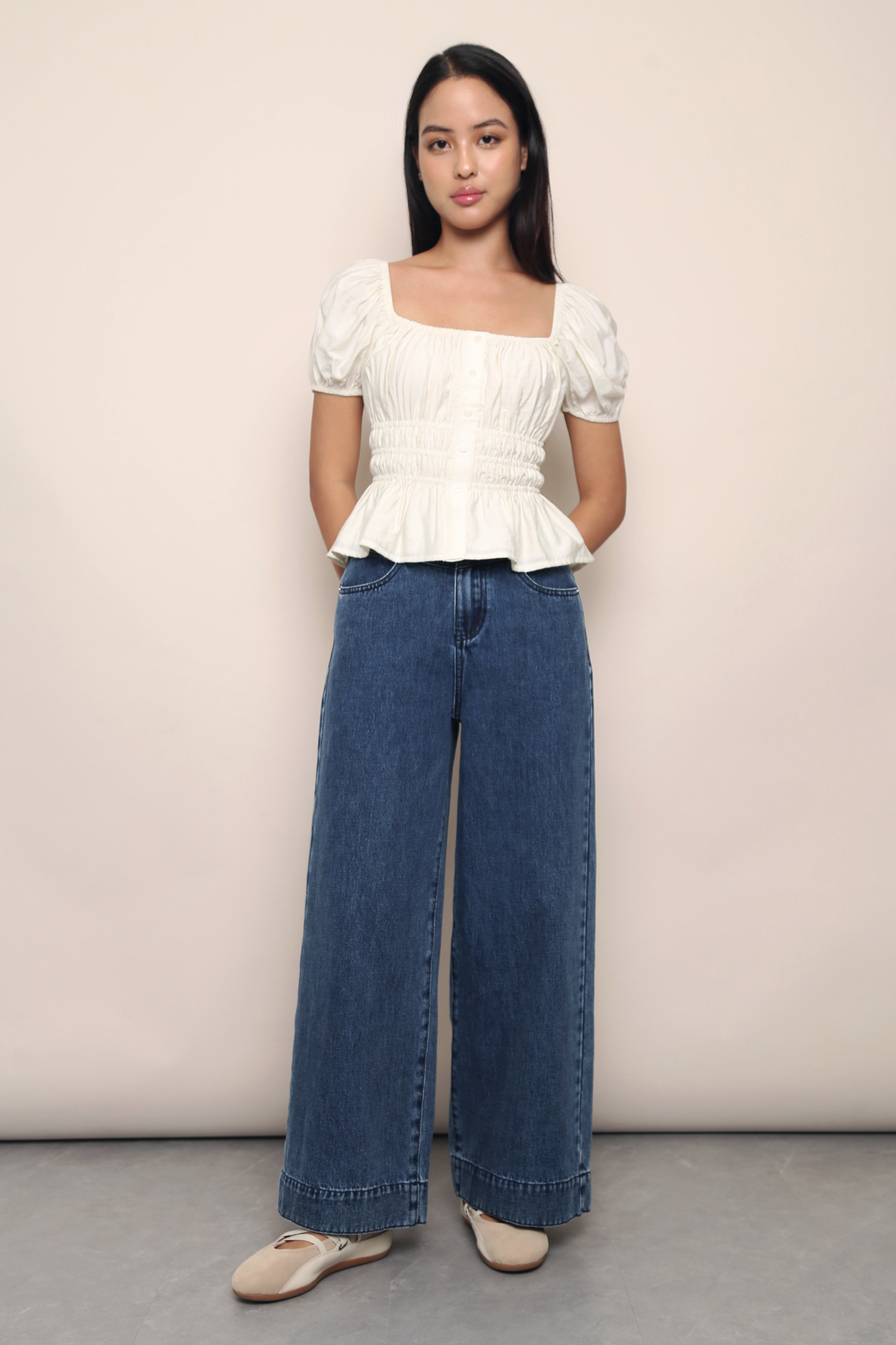 Cassis Shirred Waist Blouse Cream