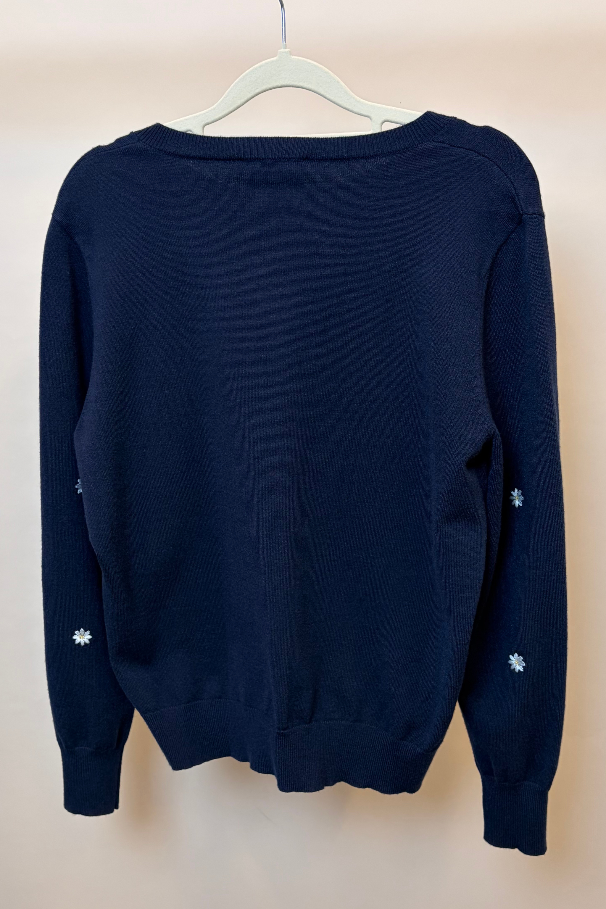 A cosy knit cardigan decorated with delicate embroidered accents that add a sweet, feminine charm to any outfit. Soft and comfortable to wear, it layers effortlessly over dresses, tops, or workwear. A versatile piece that brings a touch of warmth and whimsy to both casual days and polished looks.