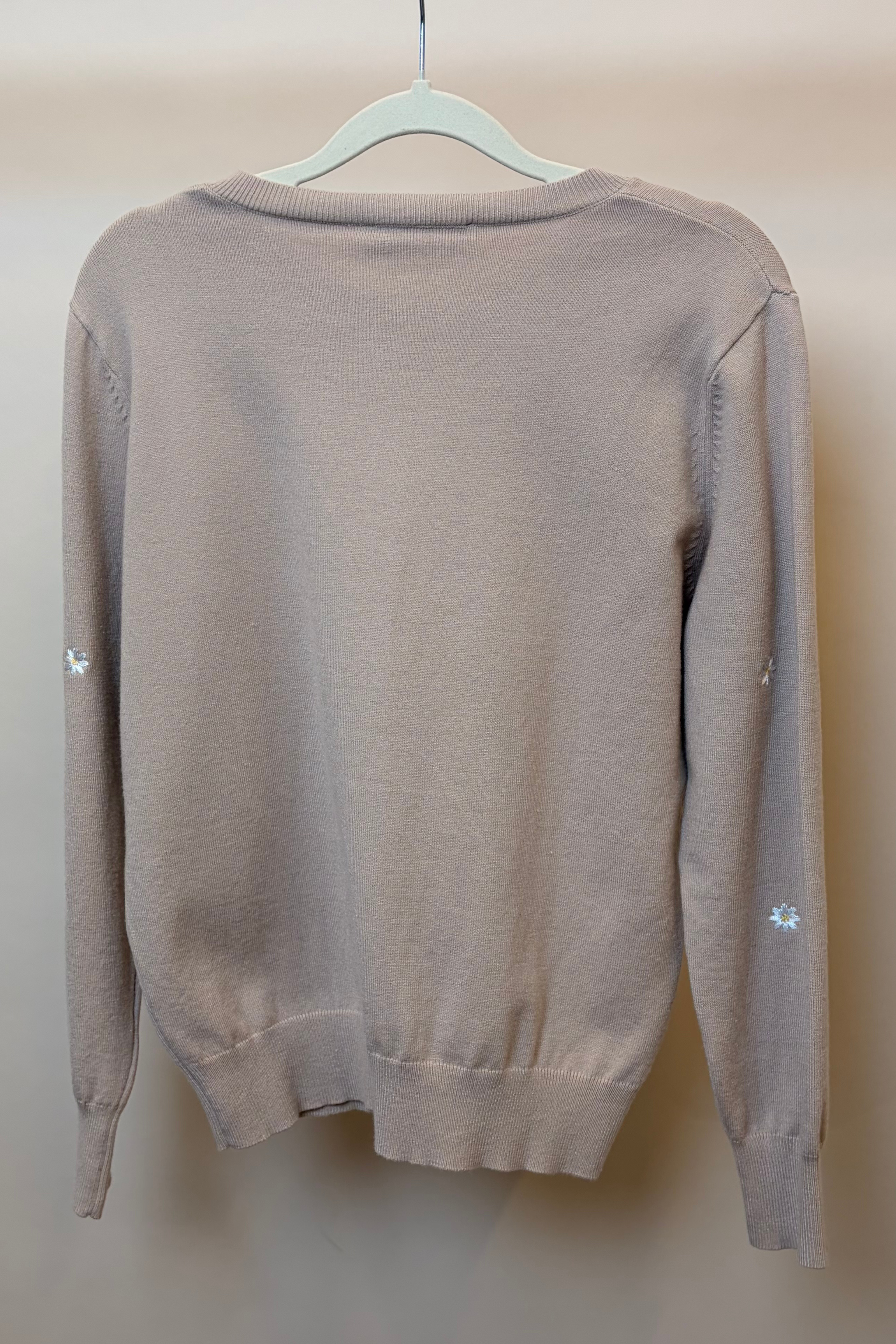A cosy knit cardigan decorated with delicate embroidered accents that add a sweet, feminine charm to any outfit. Soft and comfortable to wear, it layers effortlessly over dresses, tops, or workwear. A versatile piece that brings a touch of warmth and whimsy to both casual days and polished looks.