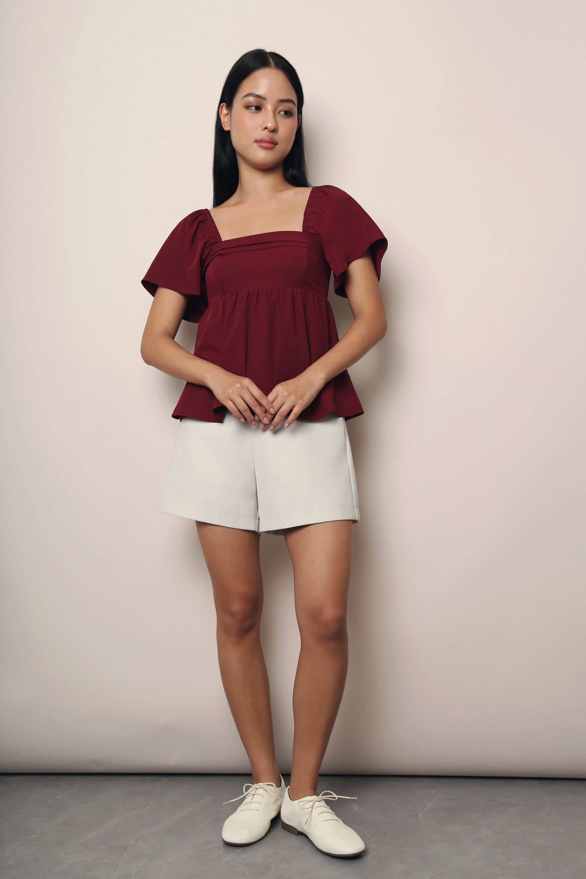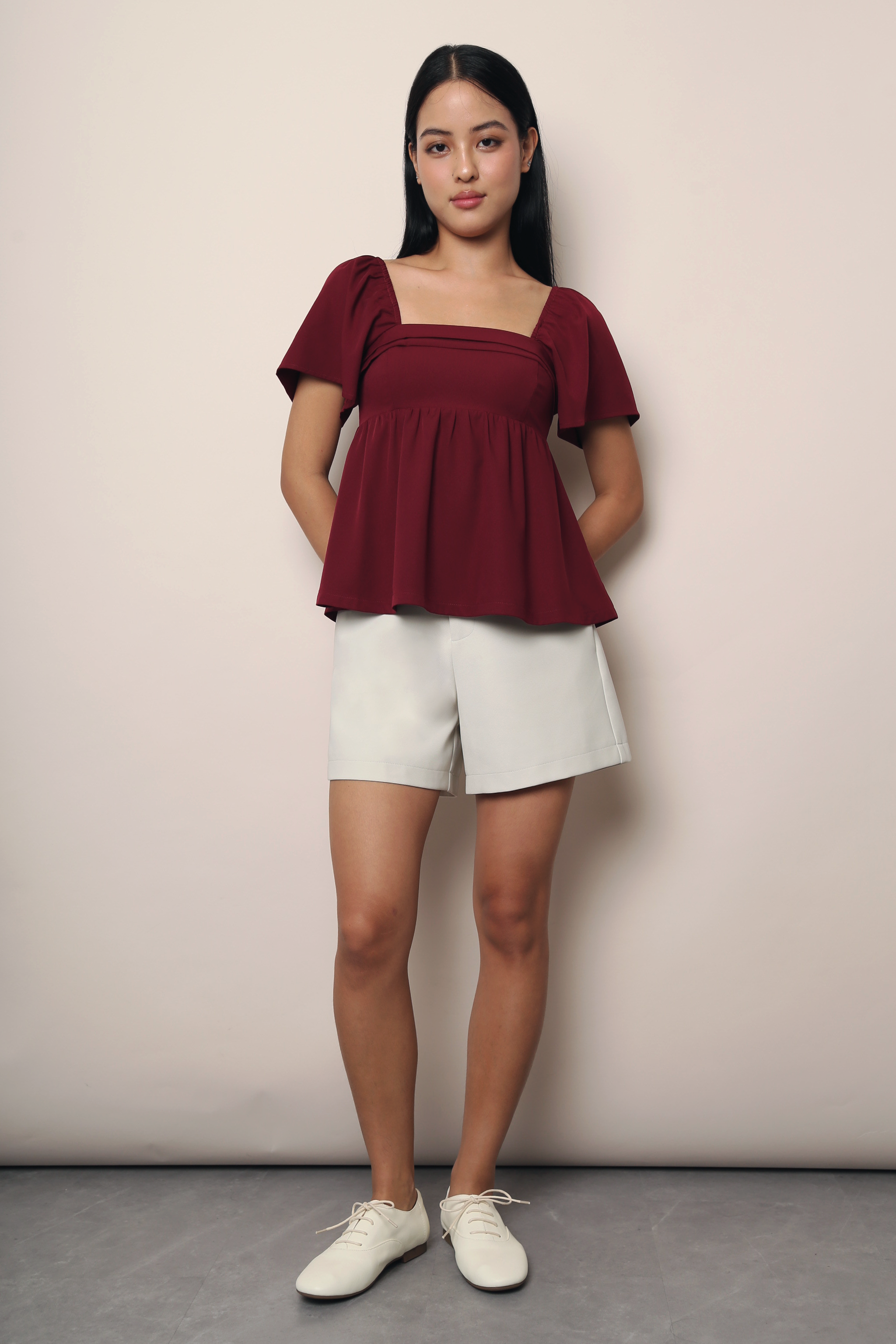 Coco Pleat Babydoll Top Burgundy