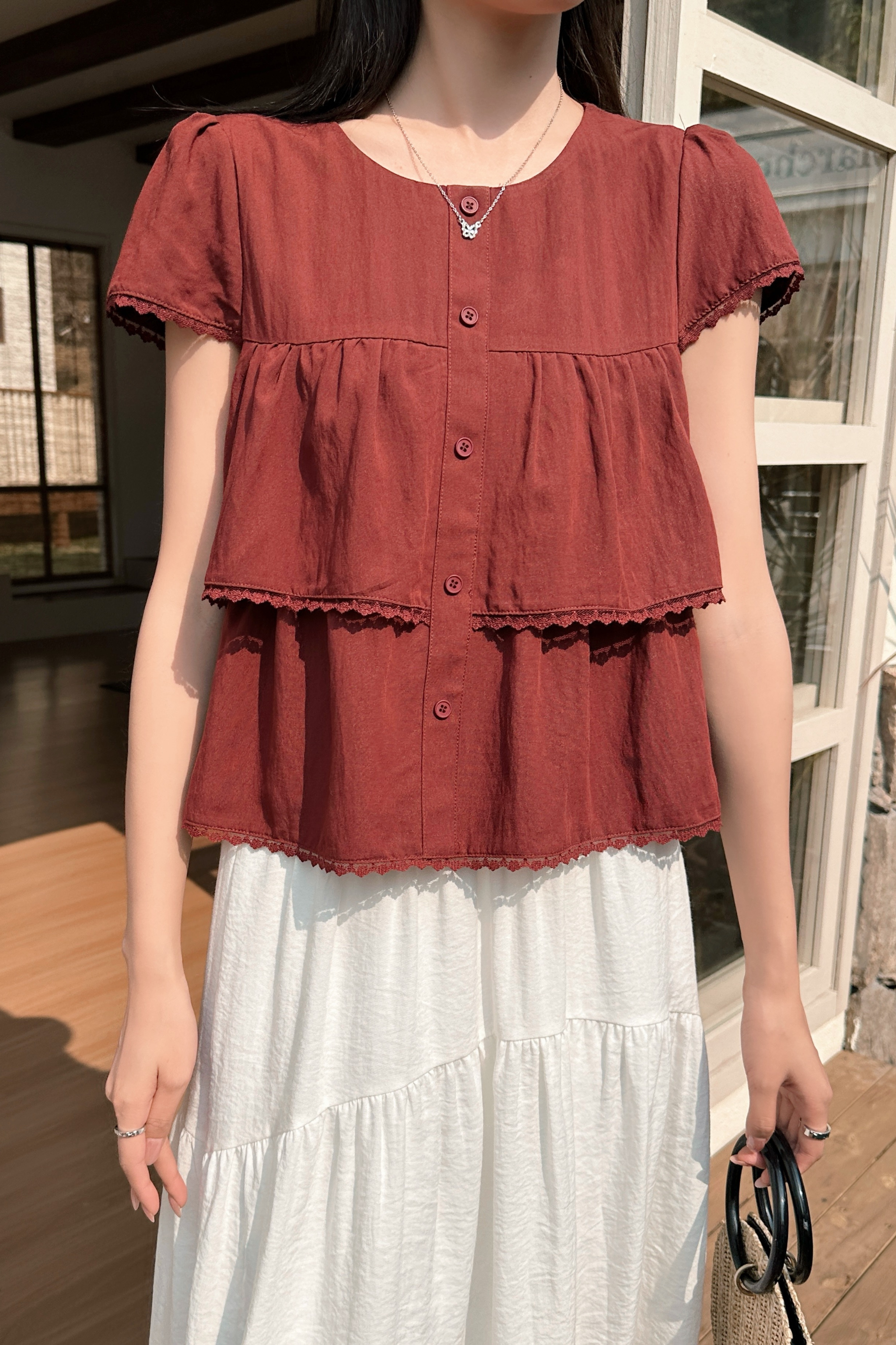 Colleen Lace Trim Blouse Burgundy
