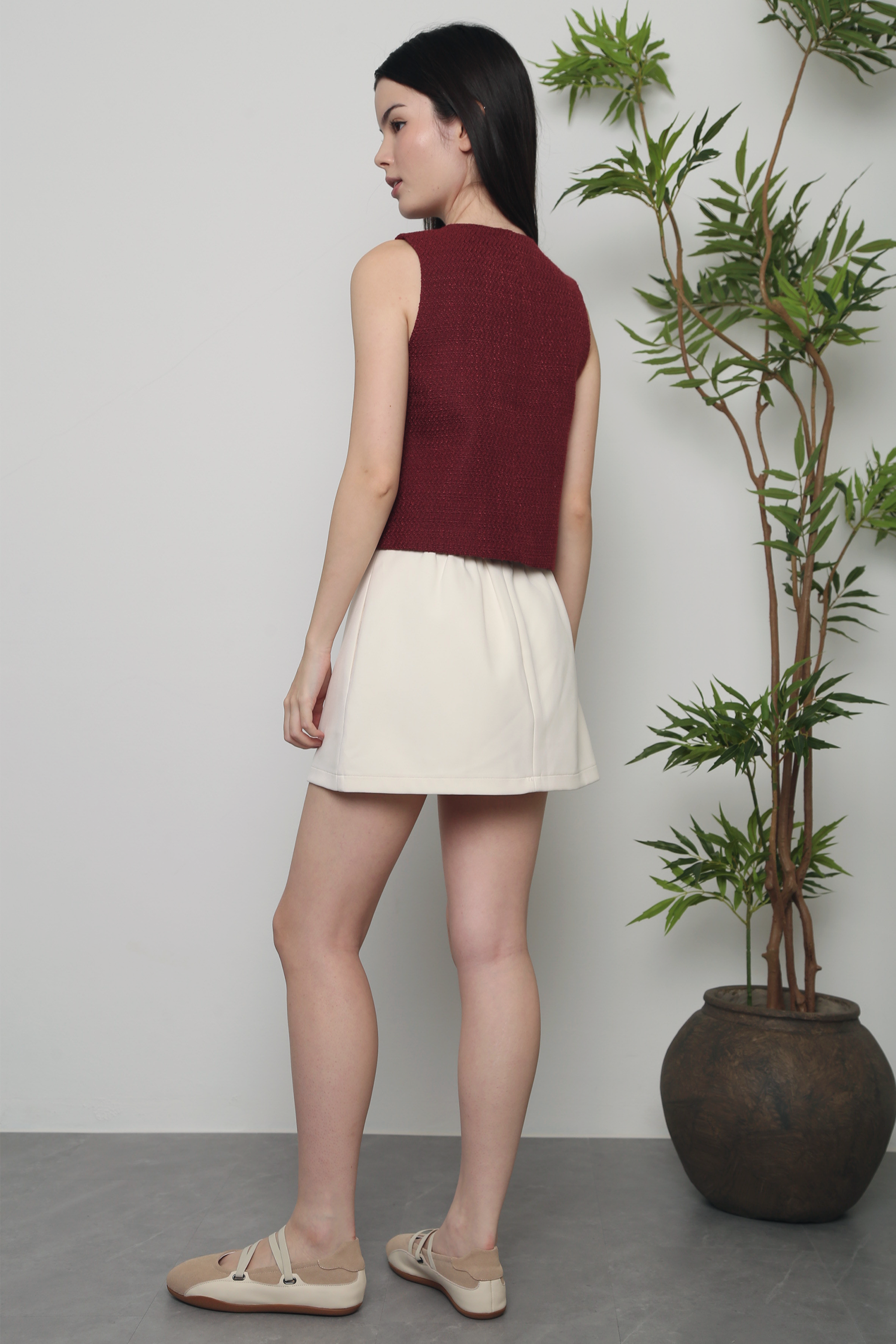 Enchanted Tweed Vest Top Wine