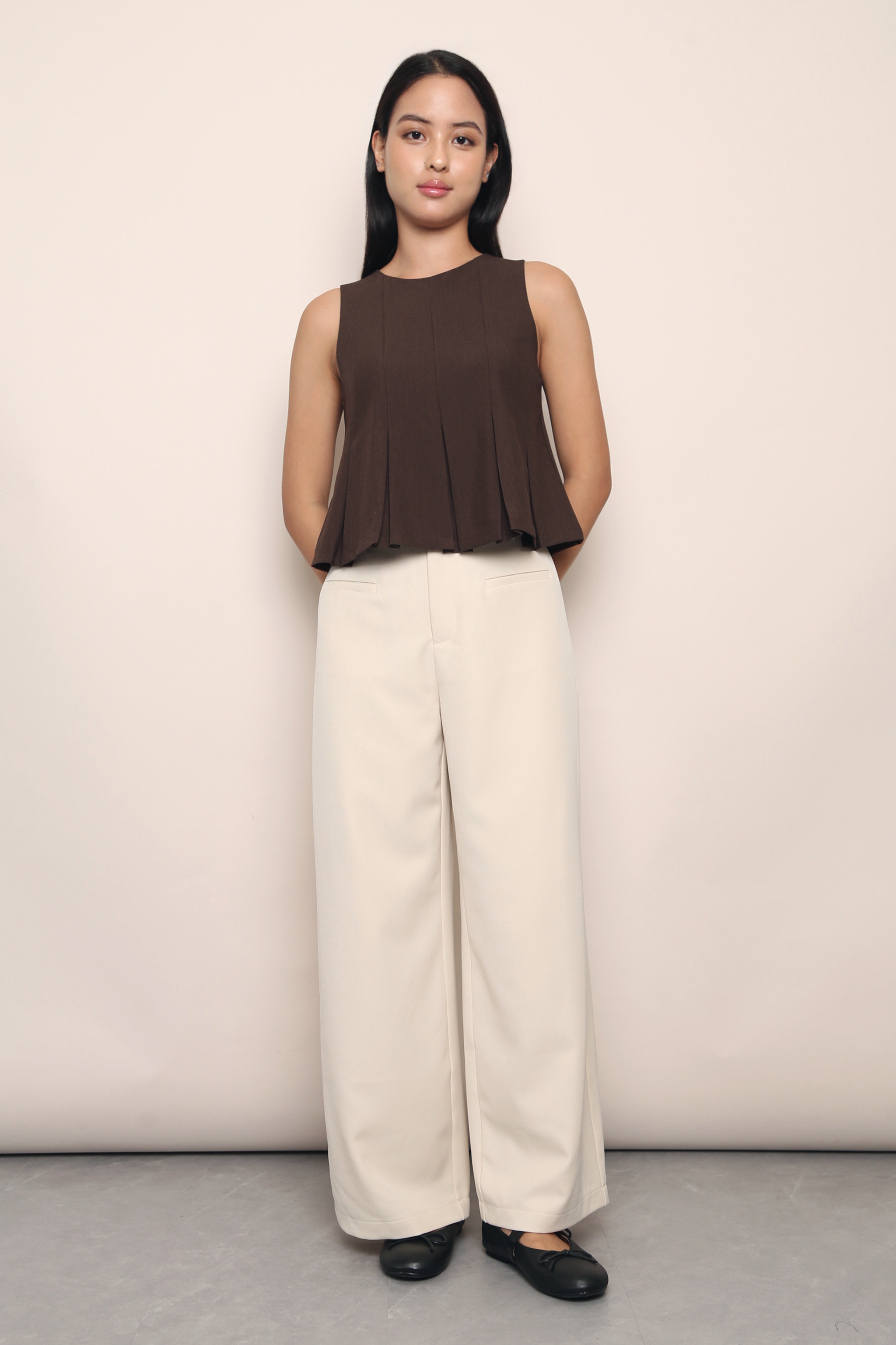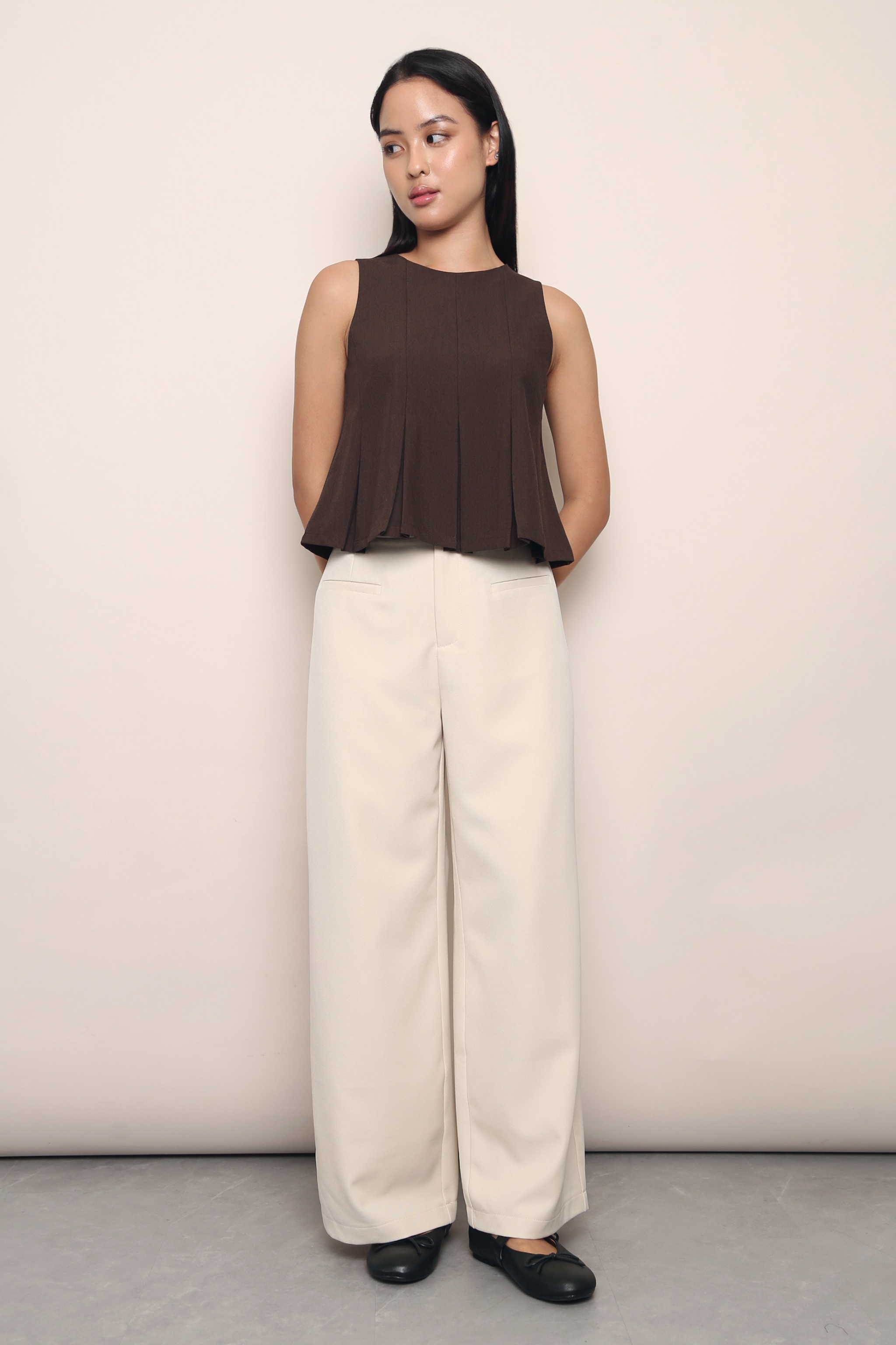 Everleigh Pleat Babydoll Top Brown (Backorder)