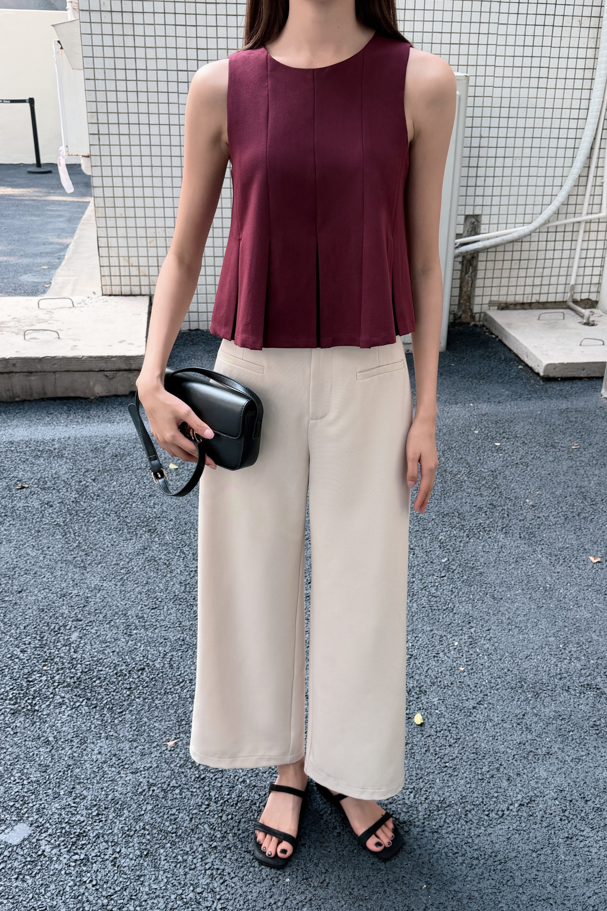Everleigh Pleat Babydoll Top Wine (Backorder)