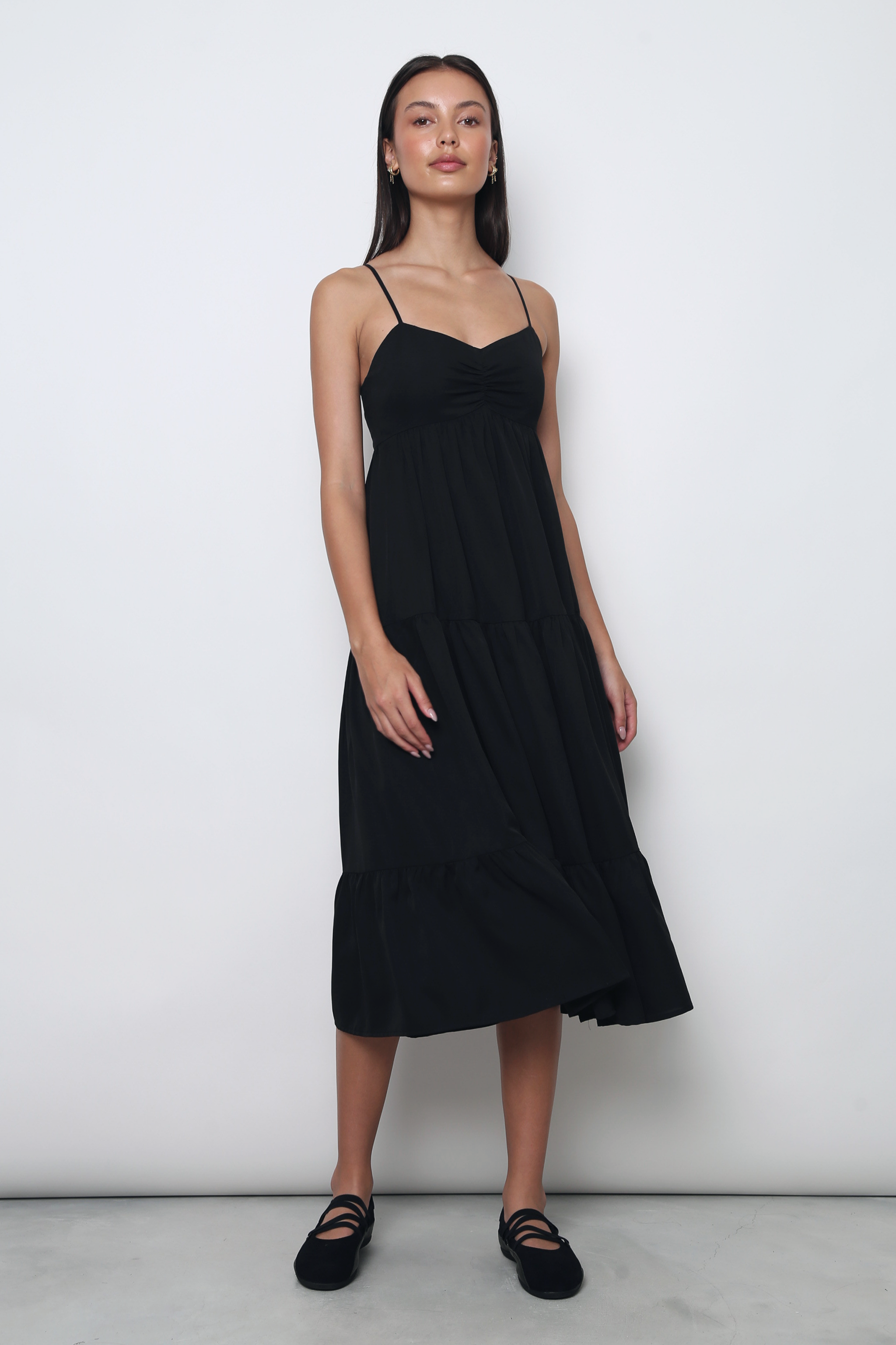 A romantic midaxi dress featuring a sweetheart neckline and soft tiered silhouette for effortless movement. Fully lined and designed with adjustable straps, a concealed back zip, and functional side pockets, it’s the perfect blend of comfort and feminine charm for both casual days and dressier outings.