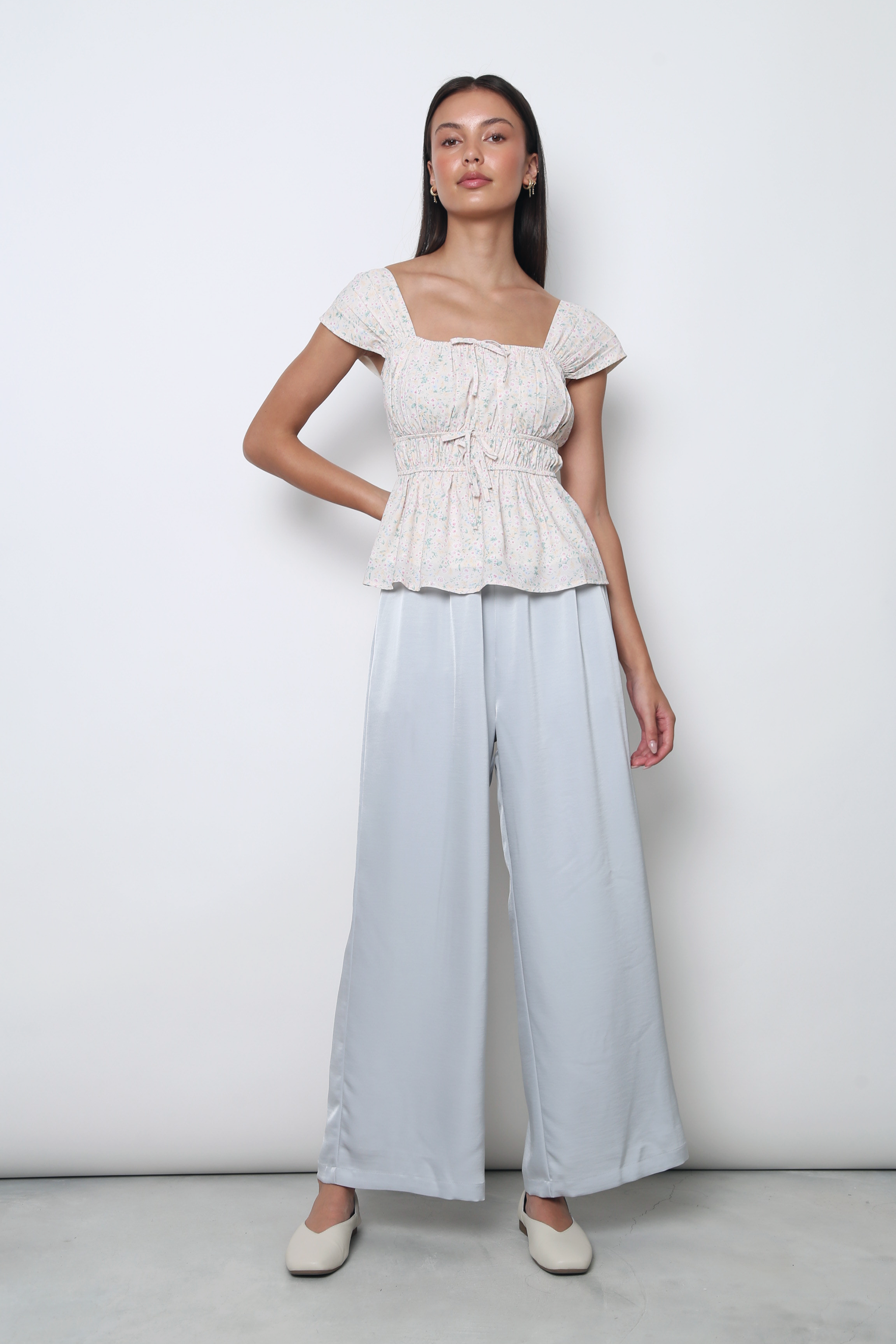 Fleurine Fan Sleeves Top Beige