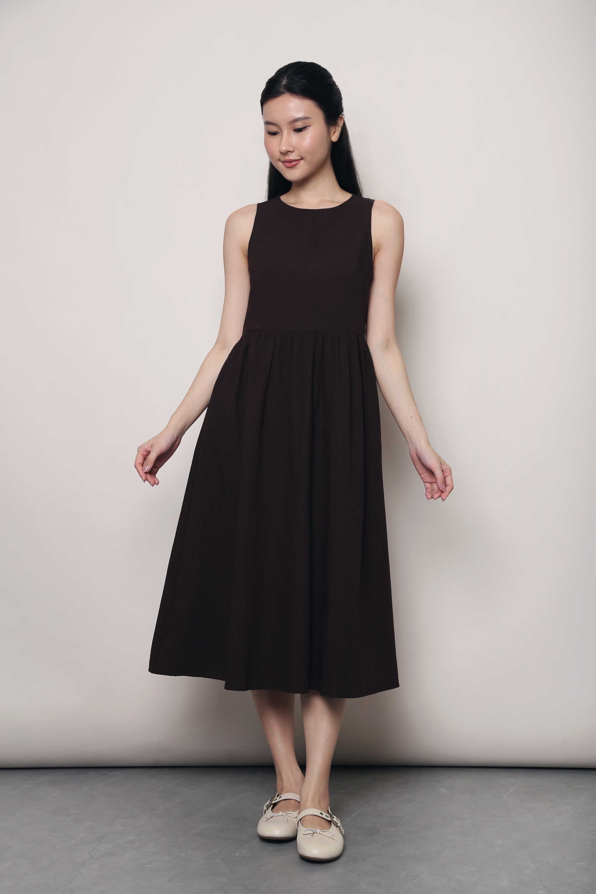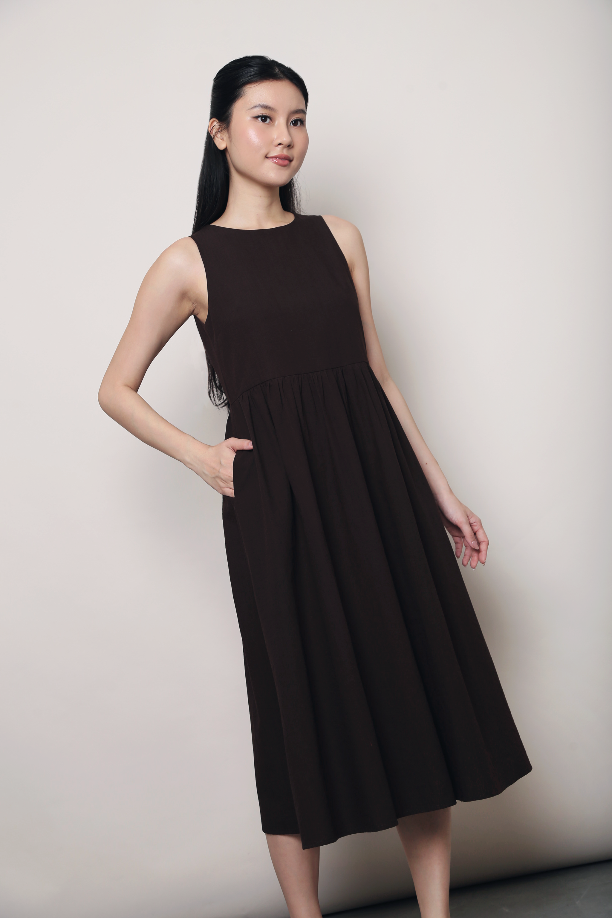 Flinders Sleeveless Midi Dress Brown (Backorder)