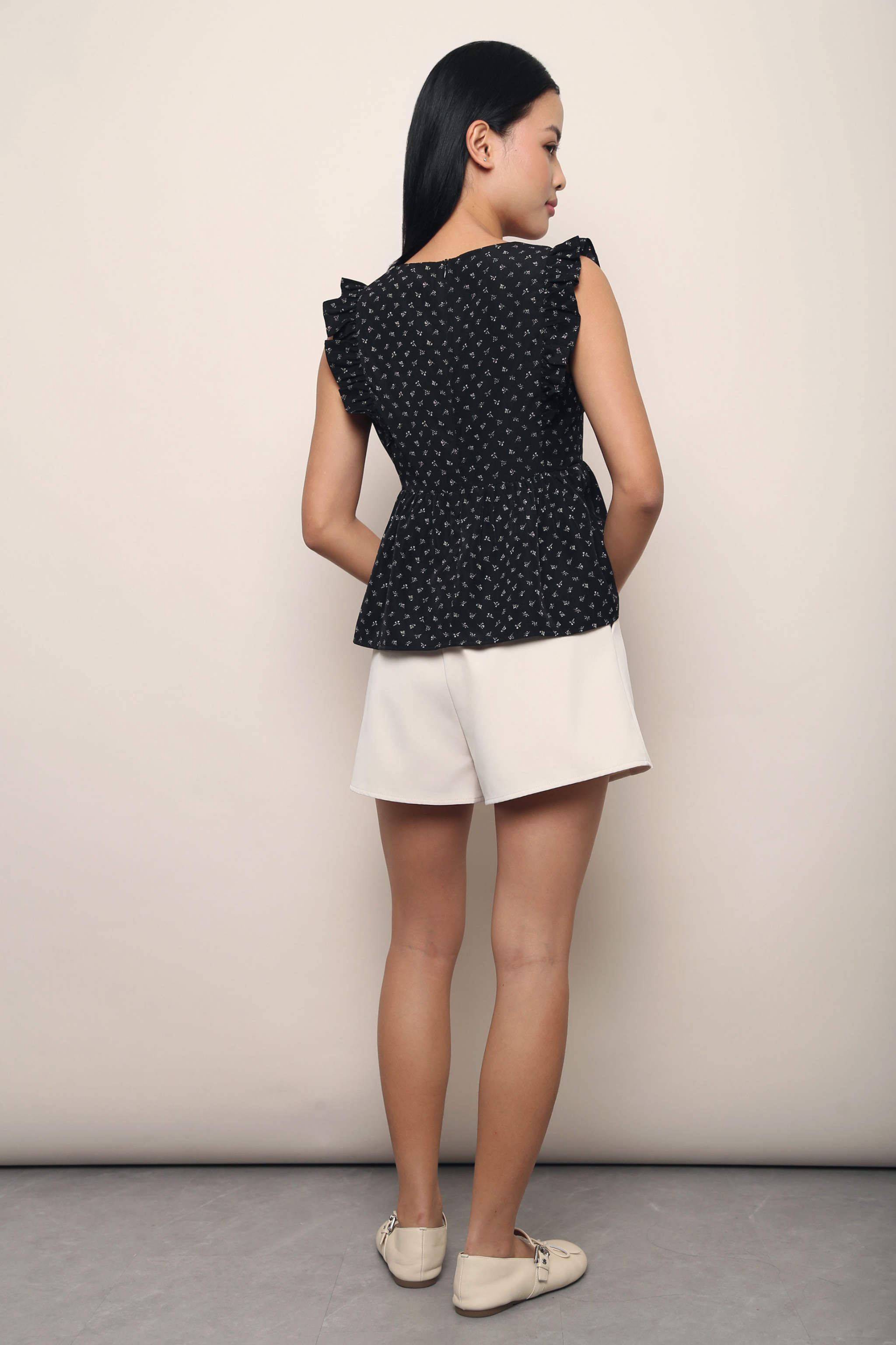 Flirty, flattering, and easy to wear. Designed with a subtle V-neckline and soft ruffle sleeves, this top features an all-over mini floral print that adds texture without feeling busy. The gently cinched waist creates a flattering shape, while the fully lined finish keeps it comfortable and fuss-free. A perfect go-to for both casual days and dressed-up evenings.