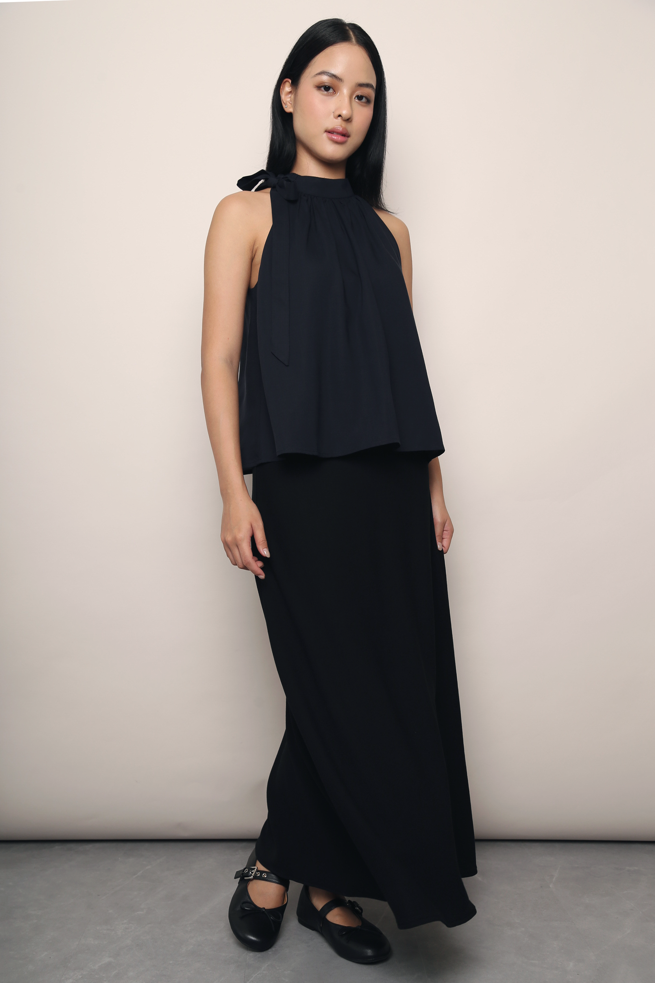 Free tie detail at neck