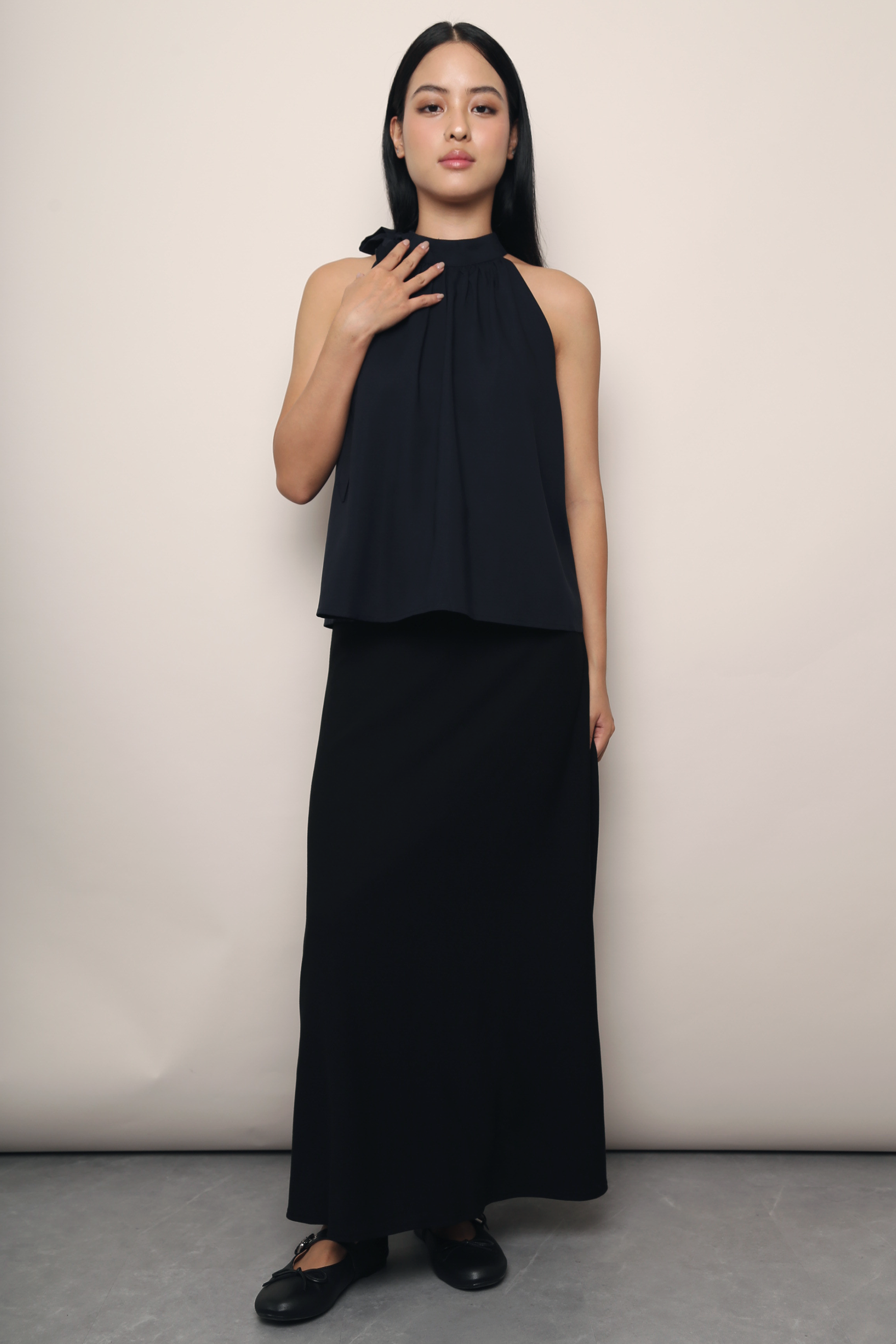 Juliette High Neck Blouse Navy