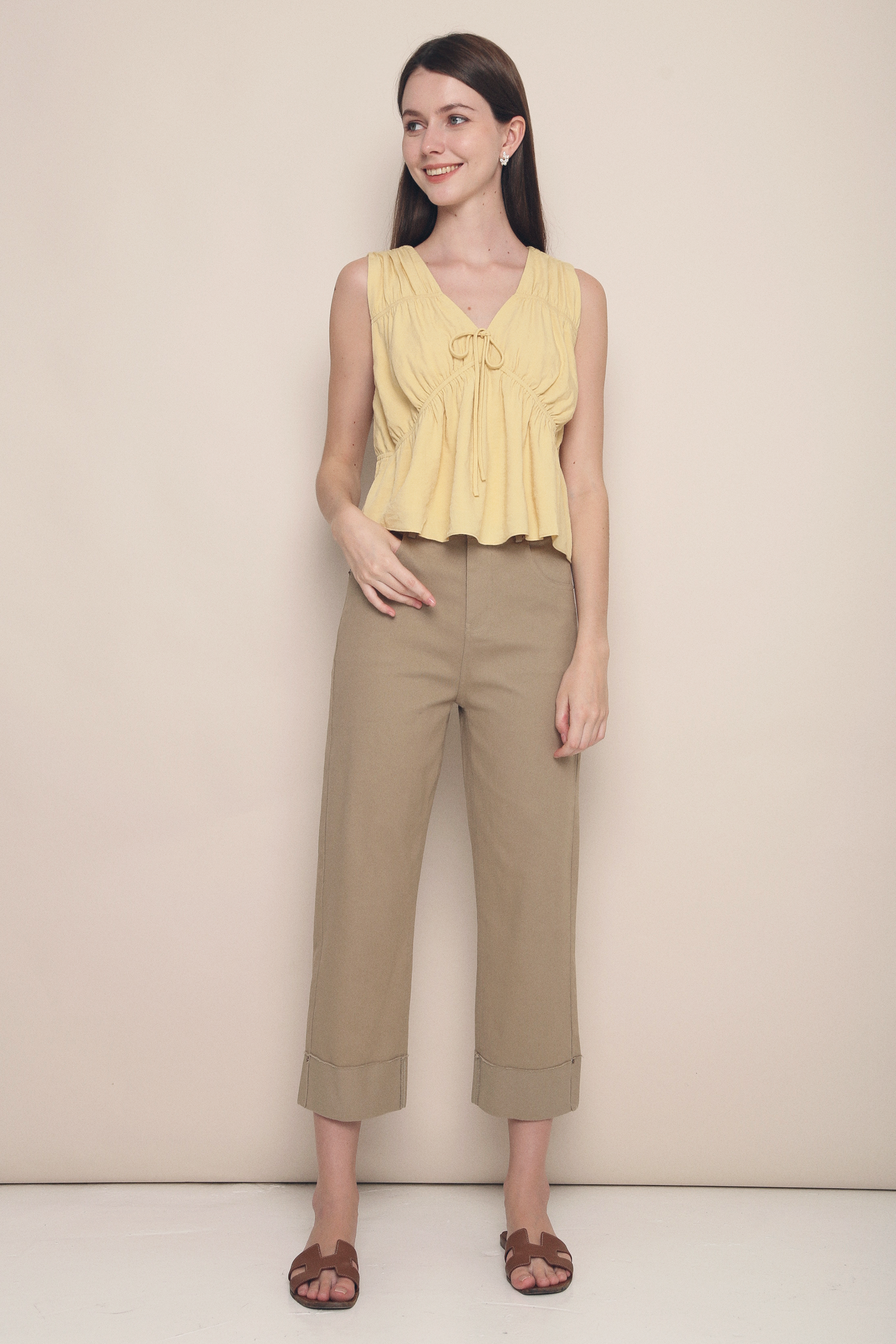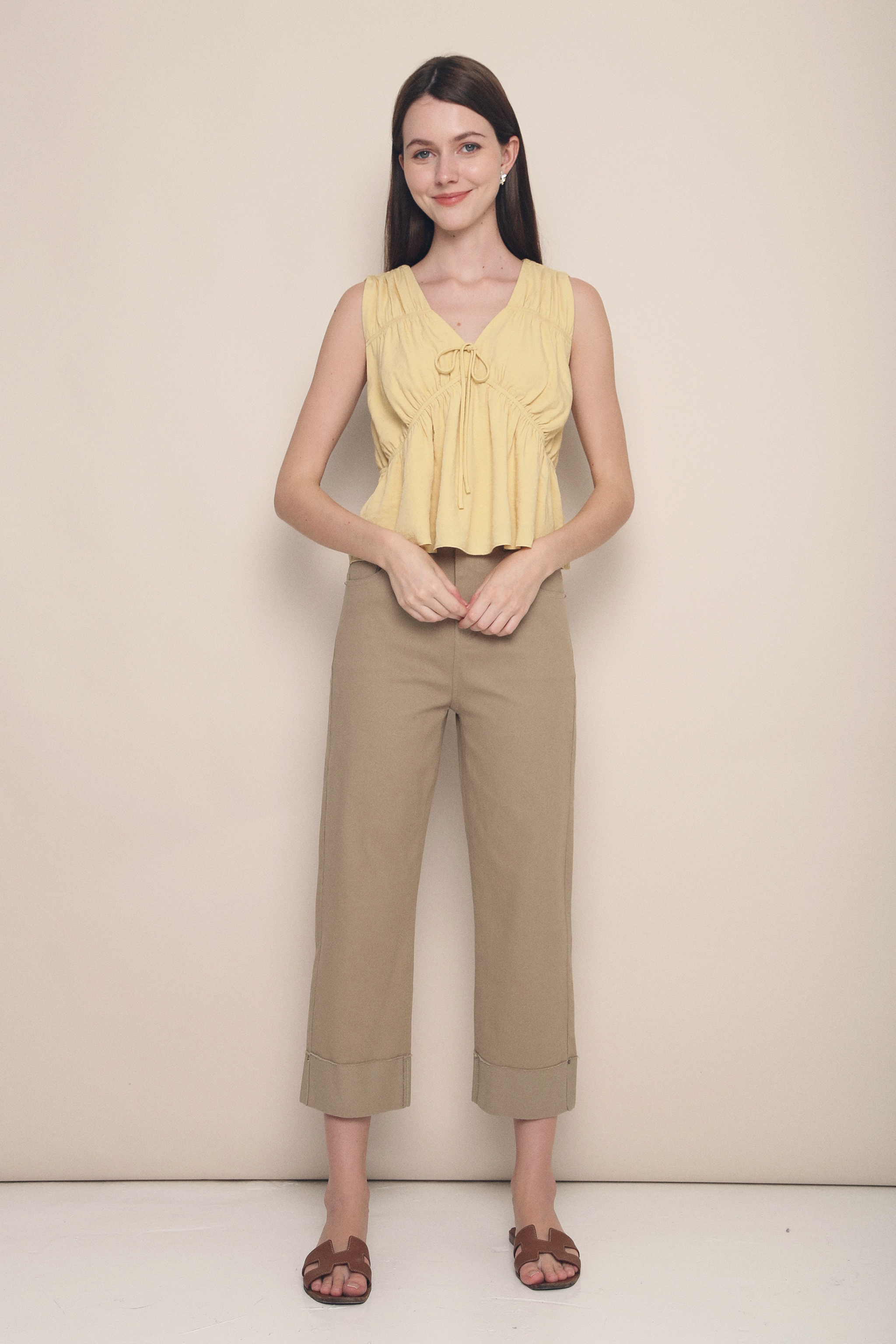 Embrace ultimate cuteness with this ruche aplenty top! Complete with a charming ribbon detail, this lightweight piece is a perfect match for any outfit.