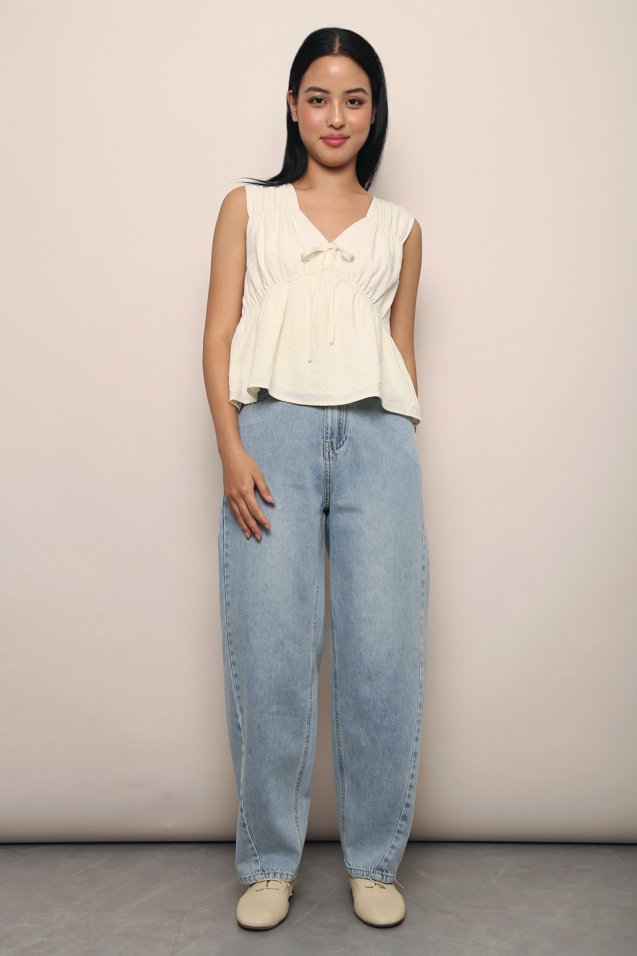 Kellyn is back with new colors and better! Embrace ultimate cuteness with this ruche aplenty top! Complete with a charming ribbon detail, this lightweight piece is a perfect match for any outfit.
