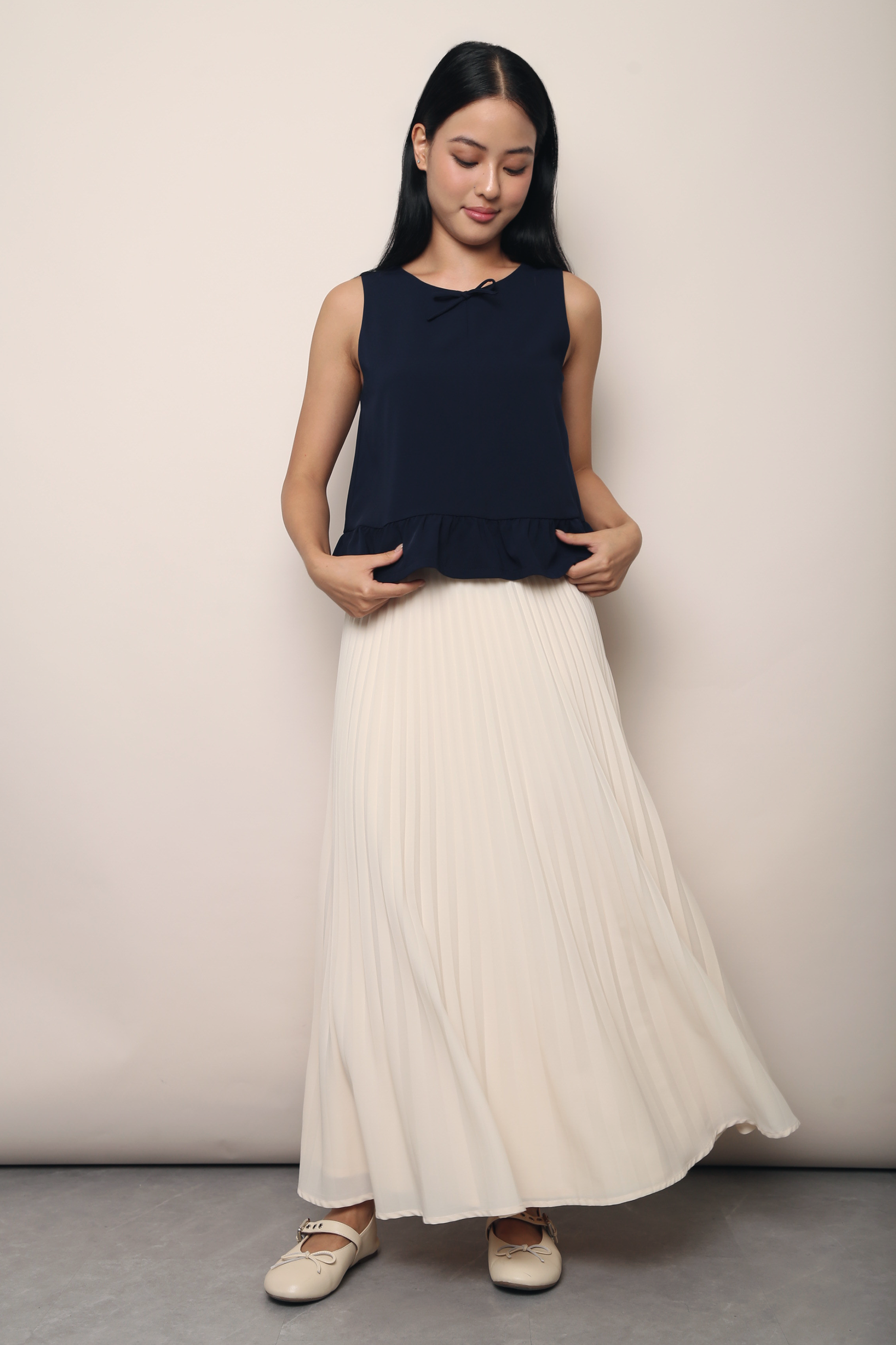 Elevate your everyday look with the Lotus Bow Peplum Top, featuring a delicate bow and a flared peplum hem that adds movement and charm. Designed with a concealed zipper at the back and fully lined for a smooth finish, it effortlessly blends playful details with refined elegance.