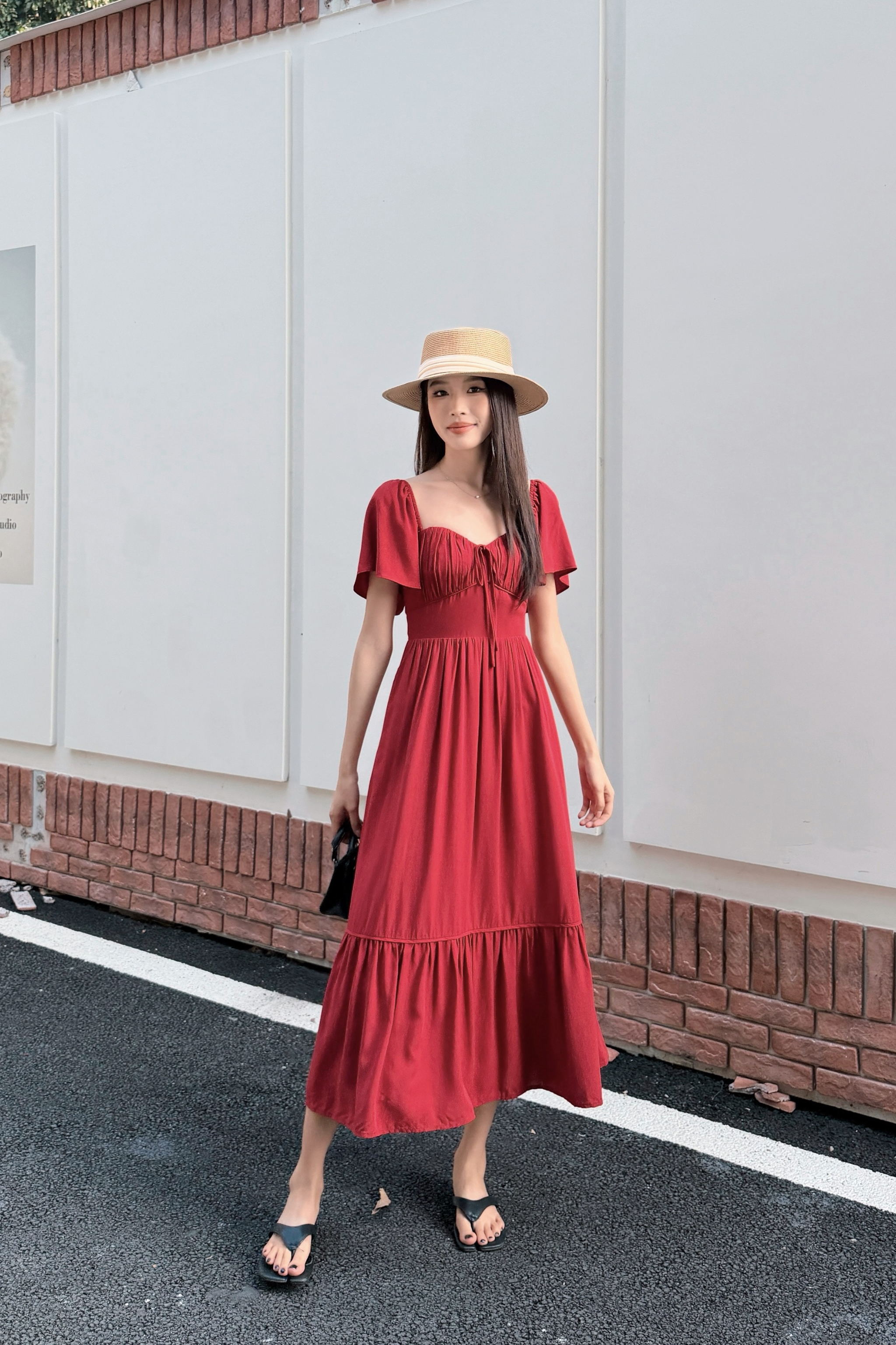 A dreamy midaxi dress with a romantic sweetheart neckline and softly ruffled sleeves. Designed with a smocked bust for a comfortable, flattering fit and finished with functional side pockets, it’s an effortless choice for brunch dates, garden parties, or any day you want to feel a little extra lovely.