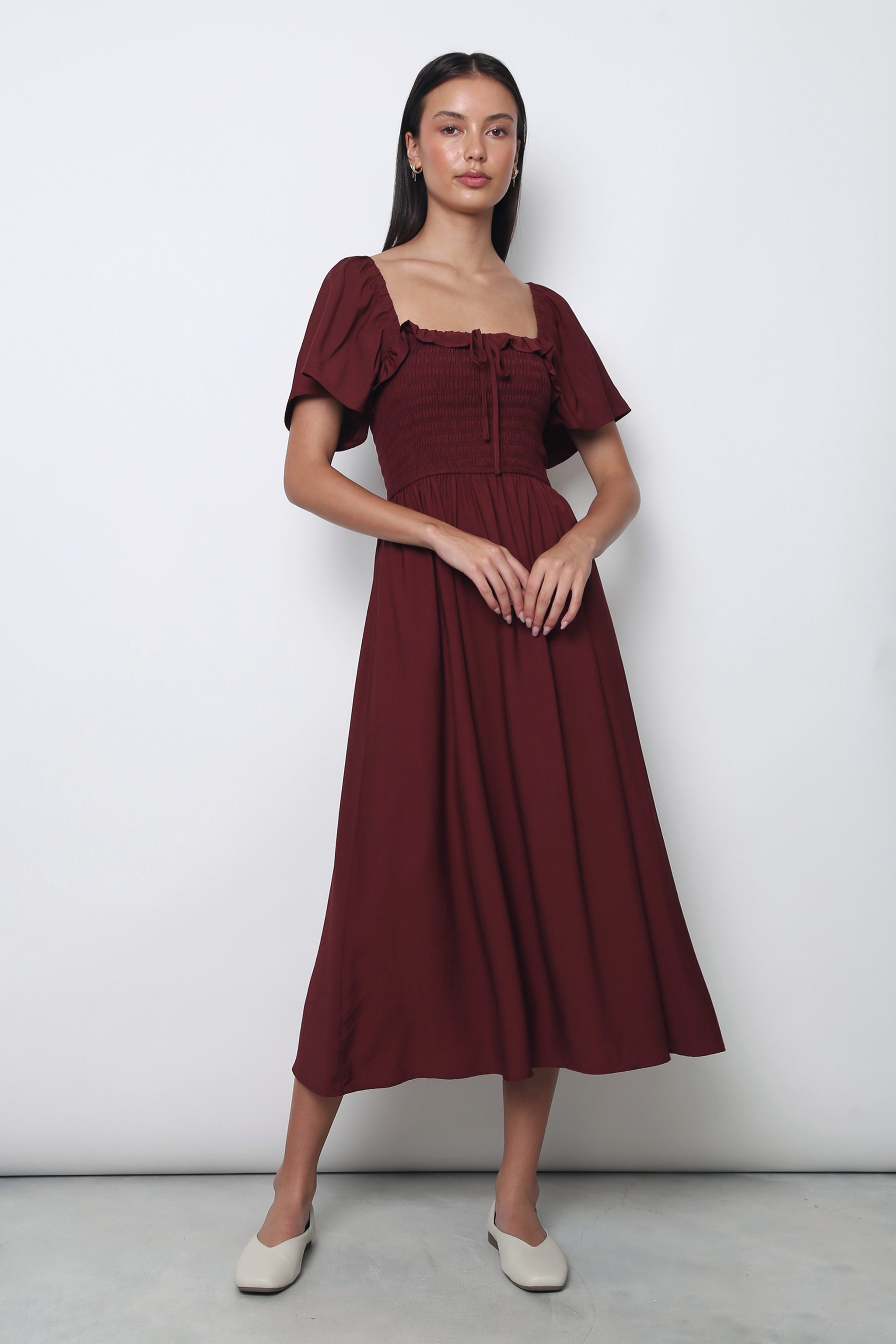 Marseille Smocked Midaxi Dress Garnet