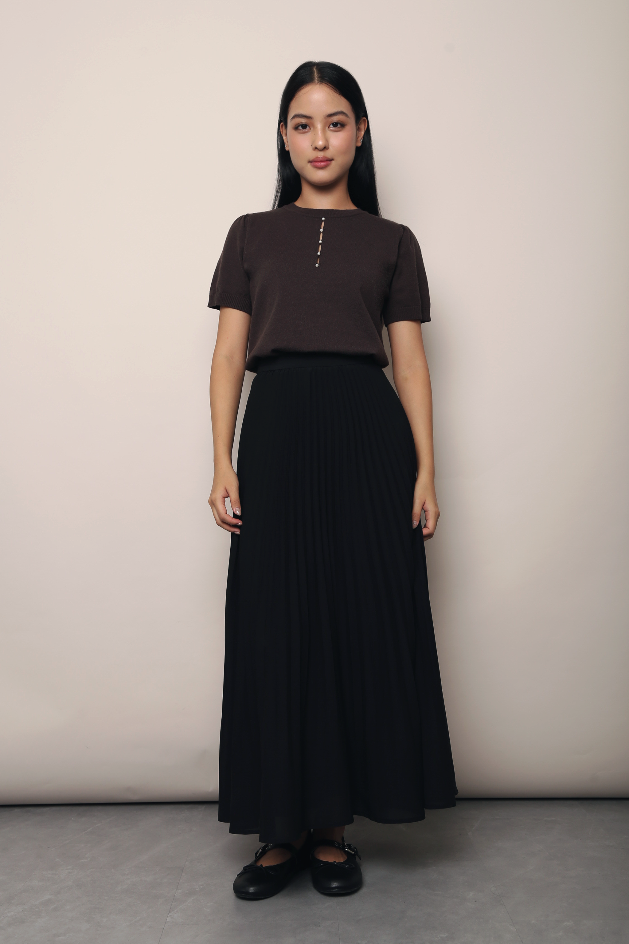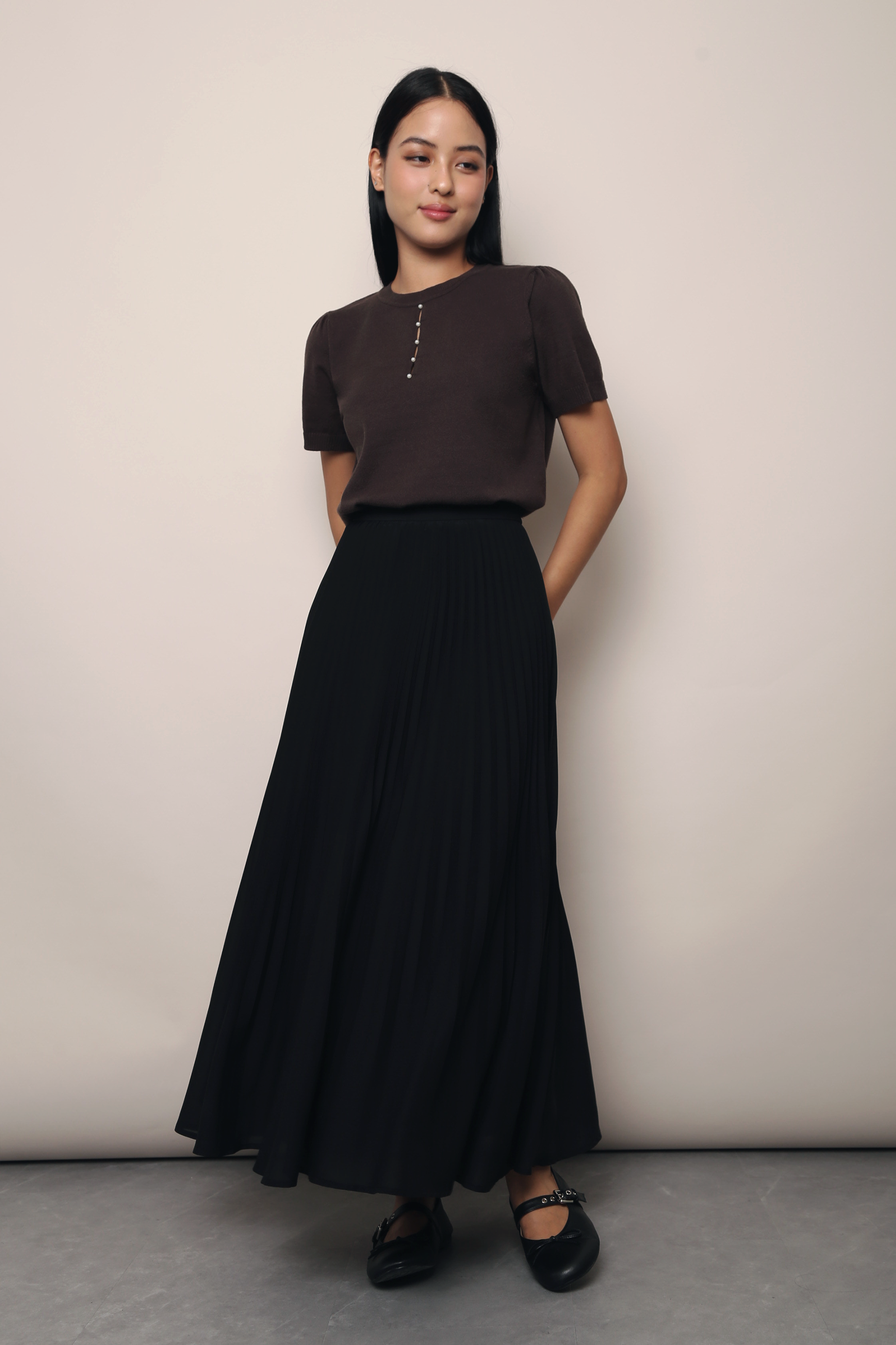 Montclair Pearl Drop Knit Blouse Chestnut Brown