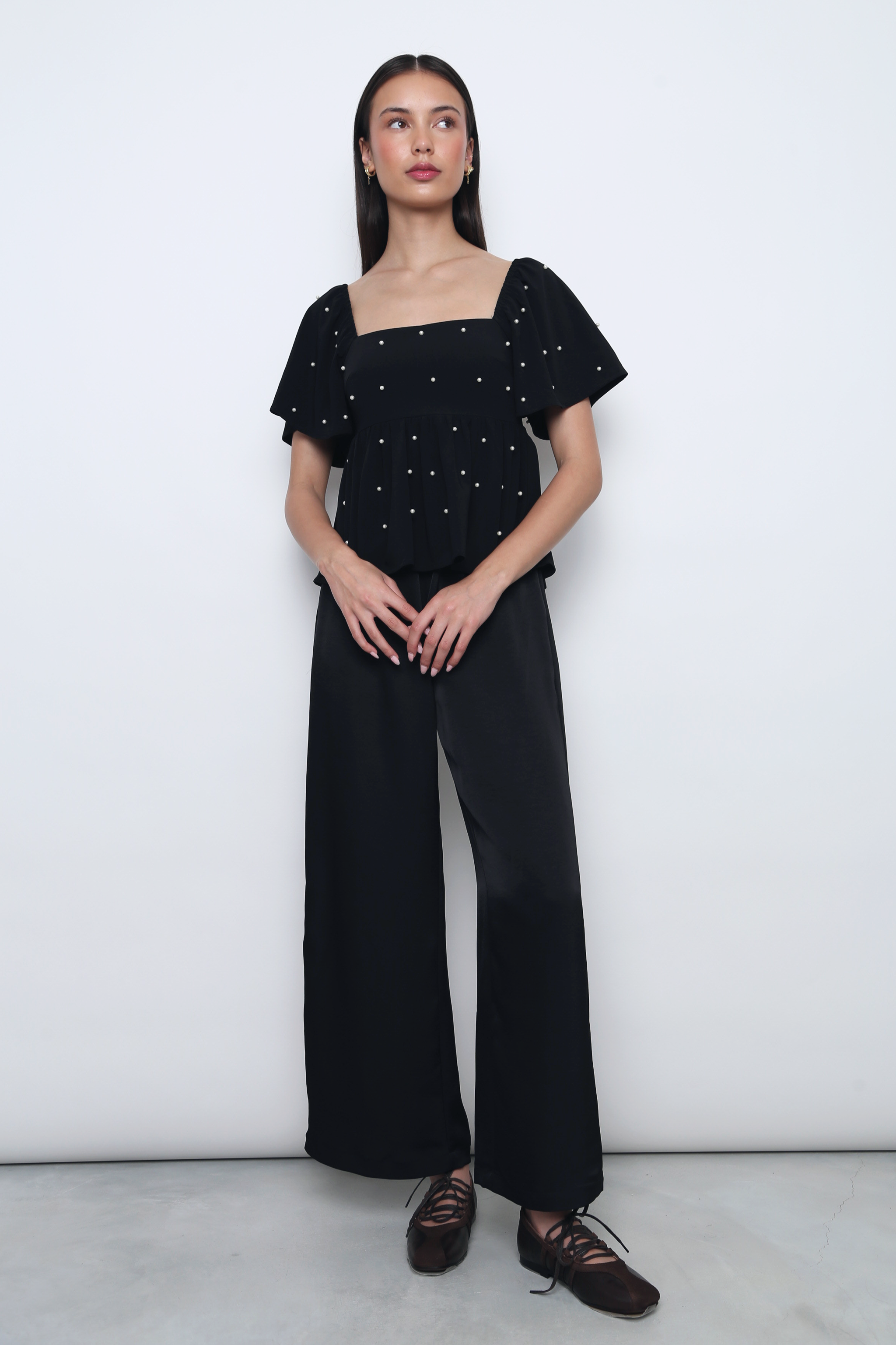 Feminine and effortlessly chic, the Moonlit Pearl Flutter Sleeves Top is designed to make you feel graceful on any occasion. Featuring delicate pearl embellishments on a soft, flowy fabric, this piece brings a touch of elegance to your everyday wardrobe. The flutter sleeves and peplum-style hem create a flattering silhouette that’s both playful and sophisticated.