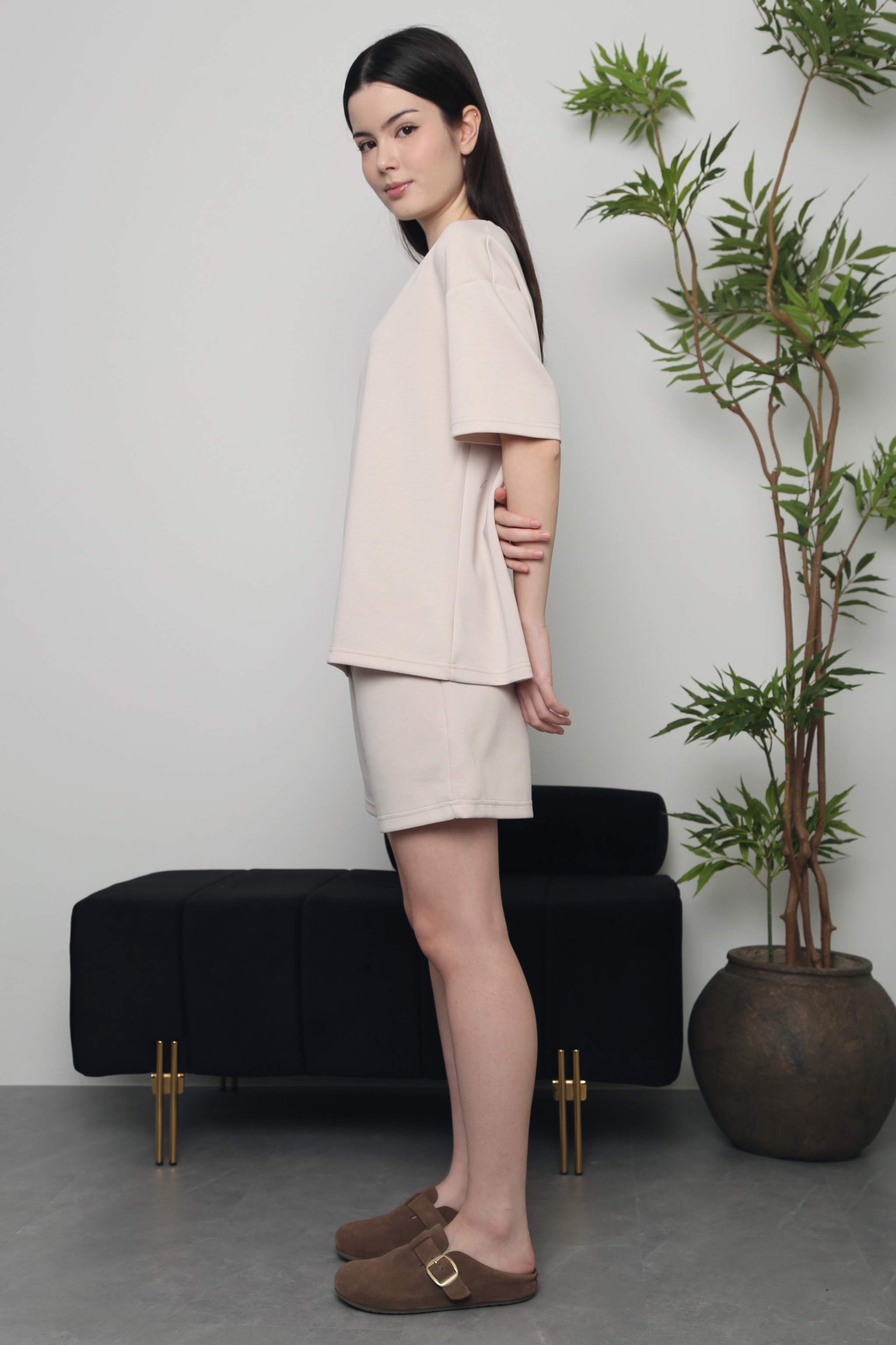 A relaxed lounge set designed for effortless comfort from morning to night. Perfect for cozy days at home, quick errands, or casual meetups. Wear the pieces together for an easy coordinated look, or mix and match with your favorite shorts, leggings, or oversized tees for versatile everyday styling.
