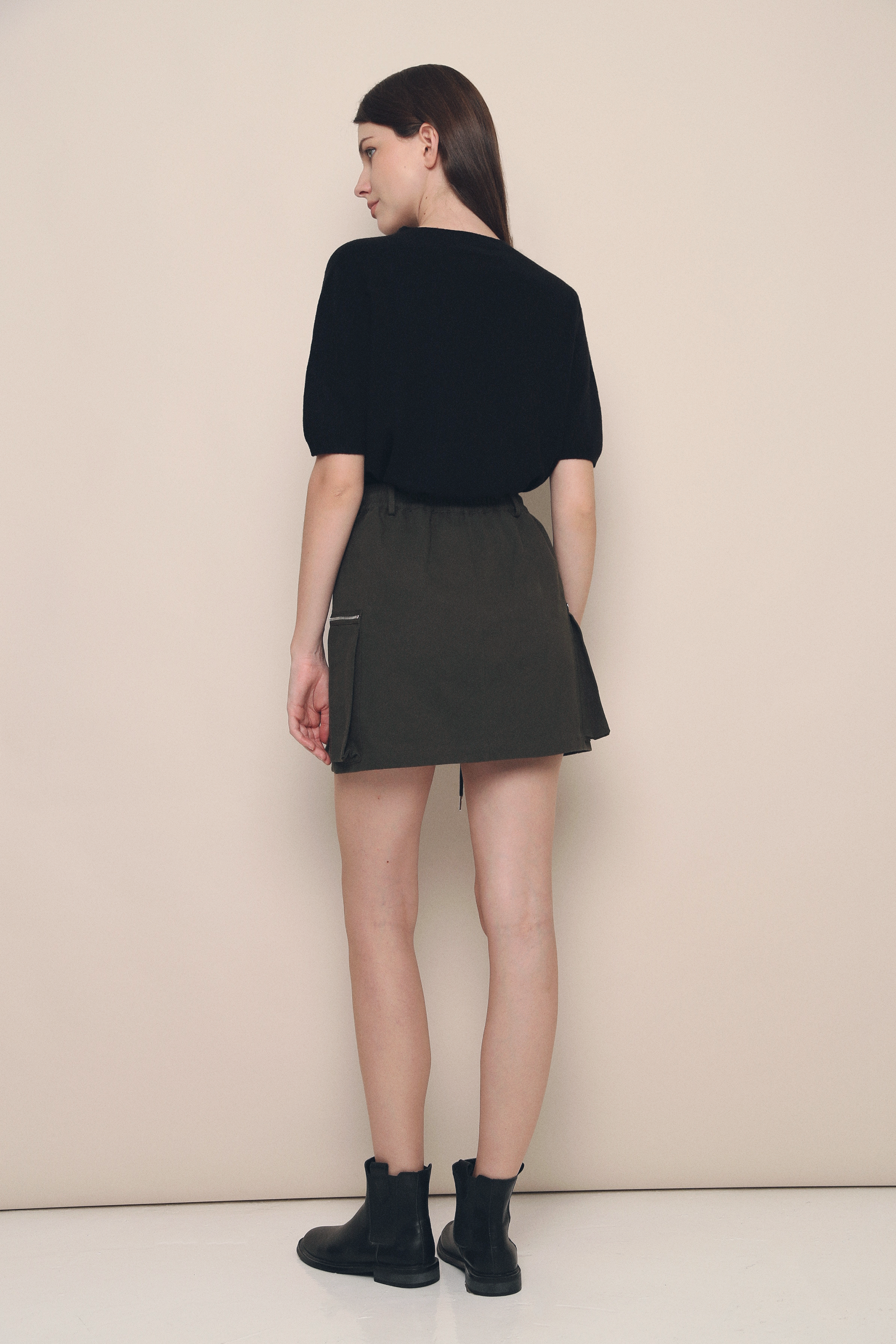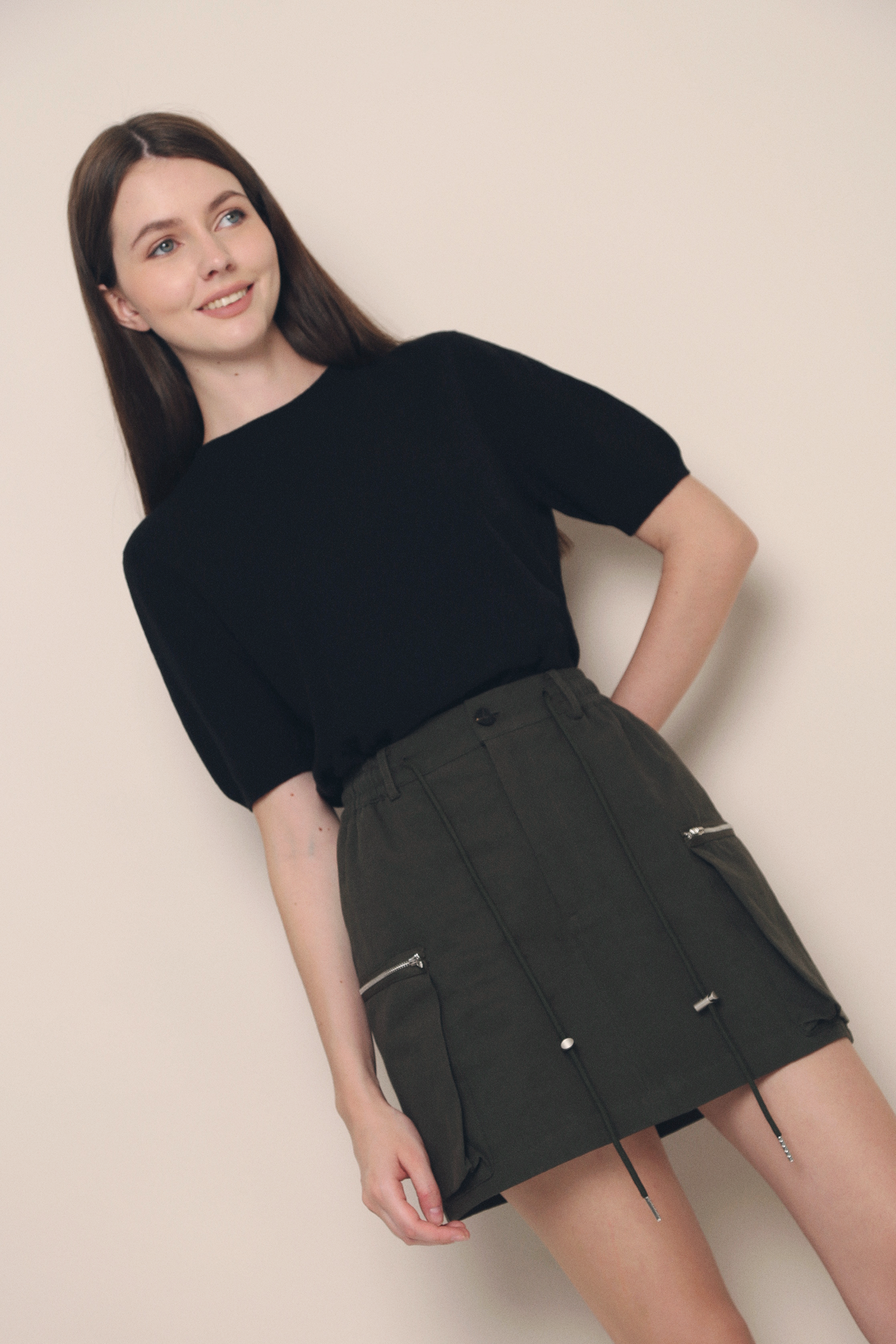 The Piper Utility Skirt is a trendy and functional piece designed with a utilitarian flair. Crafted from durable fabrics like cotton, this skirt offers both style and practicality. It typically features a high-waisted silhouette and falls to a mini or midi length, providing a structured yet comfortable fit.