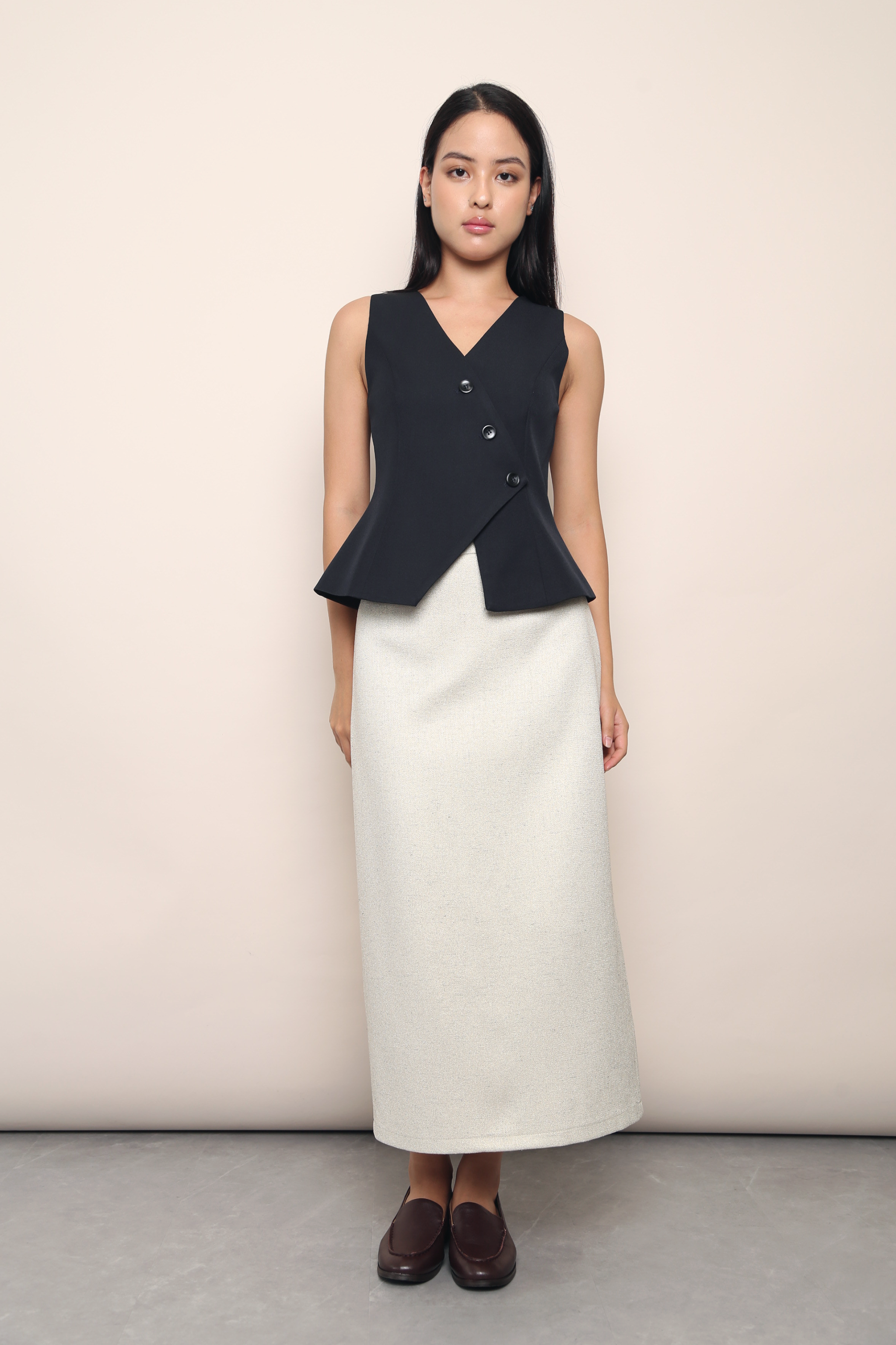 Designed in a flattering wrap silhouette, this top is crafted from a smooth polyester blend and fully lined for a comfortable yet polished feel. The functional buttons at the front allow for easy wear while adding a delicate, thoughtful detail to the design. Versatile and effortless, it’s a timeless piece that pairs beautifully with everything from tailored bottoms to relaxed denim.