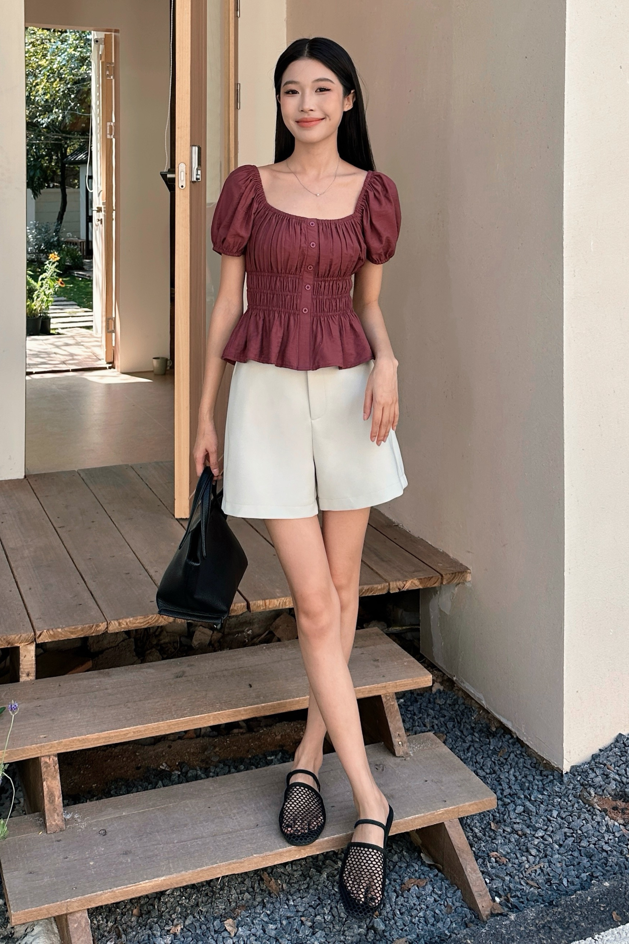 A timeless pair of tailored shorts that offer a polished yet easygoing look for everyday wear. Perfect for brunch dates, casual Fridays, or warm-weather outings. Pair them effortlessly with a crisp blouse, a simple tee, or a lightweight cardigan for a chic, put-together ensemble.