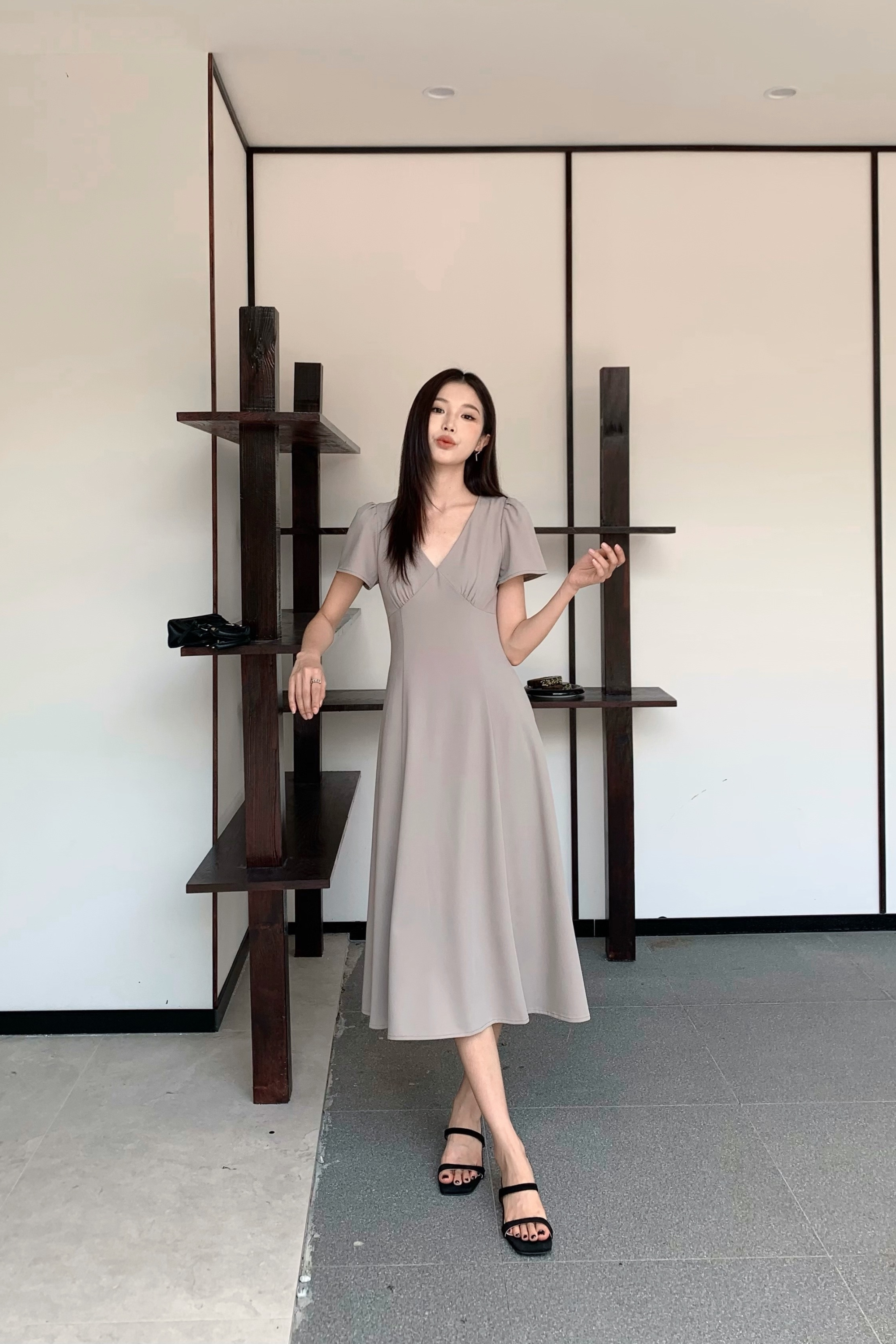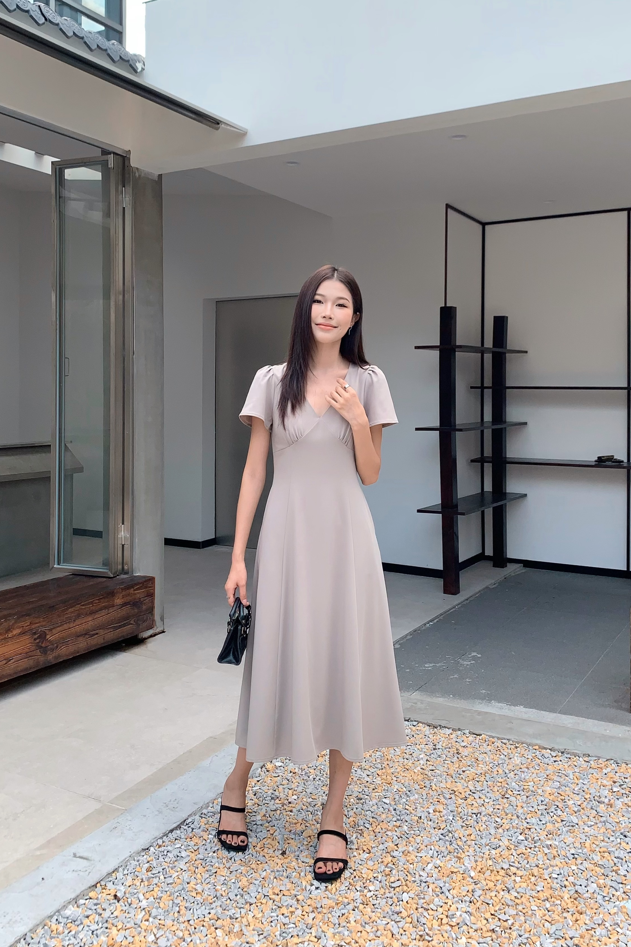 Venezia Fit Flare Midi Dress Cocoa (Restock)