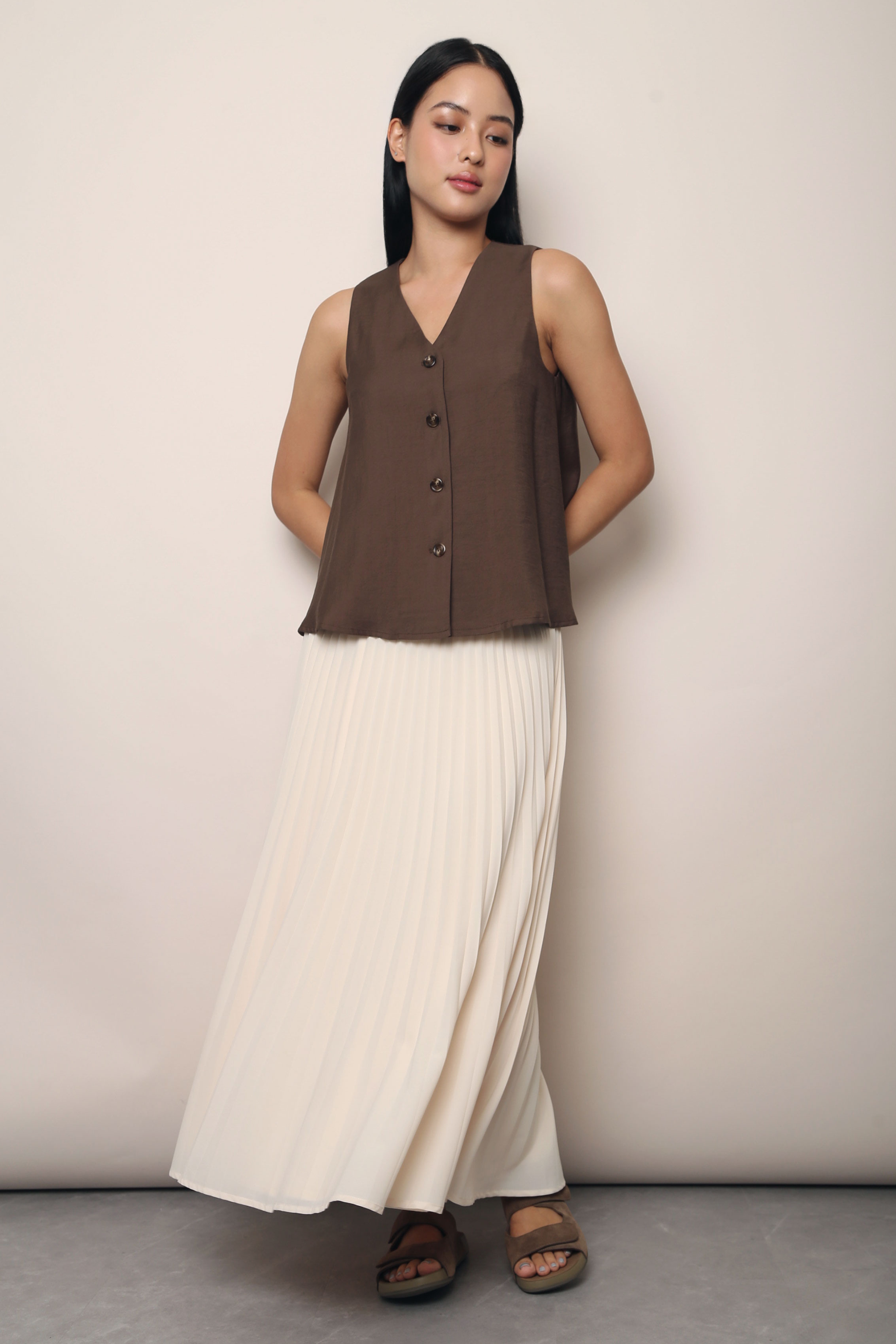 Windsor Button Down Swing Top Chestnut Brown